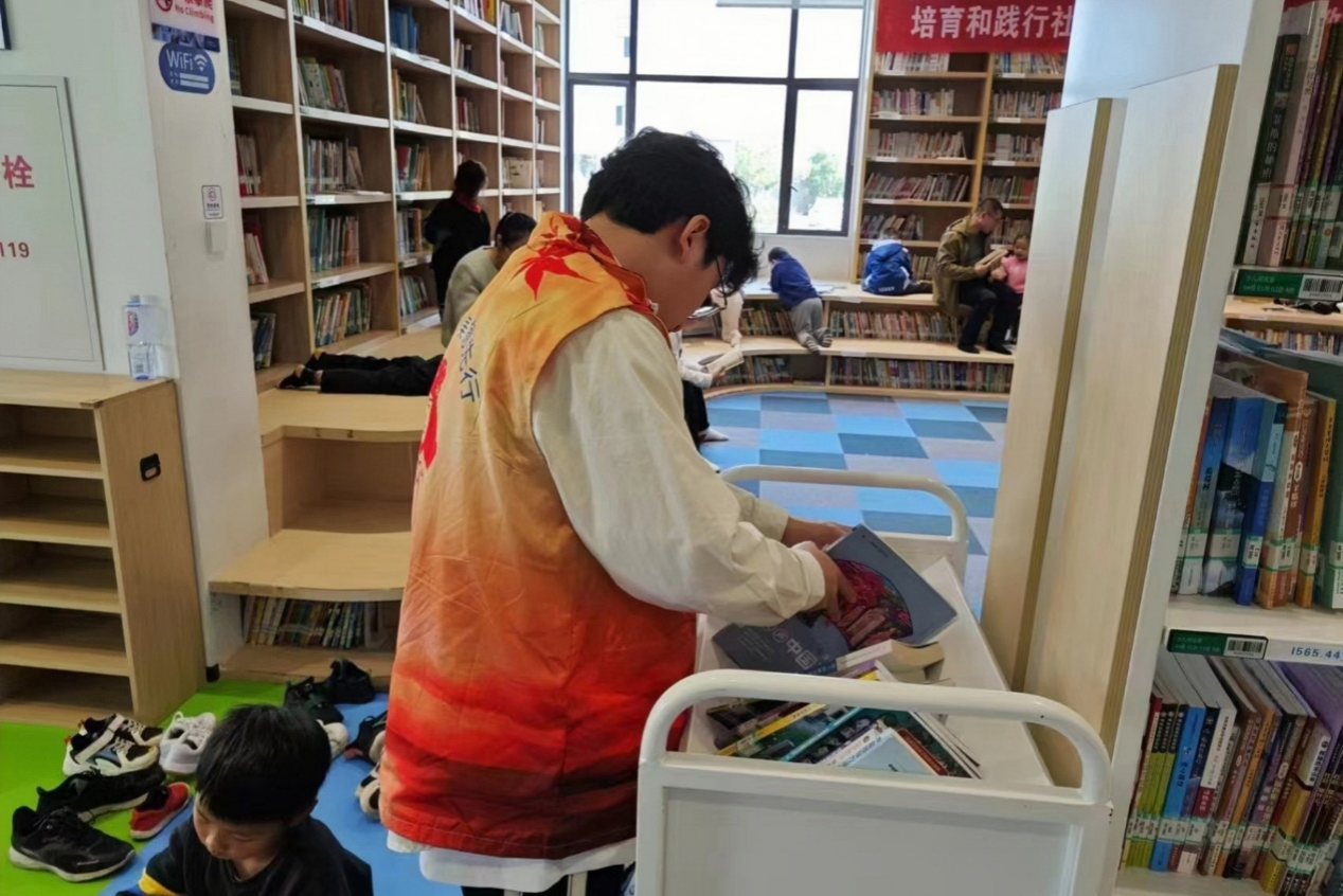 志愿者摆放图书