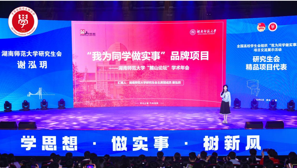 我校学生会、研究生会报送项目成功入选,其中校学生会项目获评全国优秀项目,研究生会项目获评全国优秀项目、全国精品项目,且研究生会项目作为全国四所高校代表之一、全国研究生会唯一、湖南省唯一项目与清华大学等高校在闭幕式上进行展示。