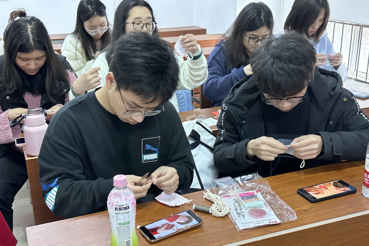 (通讯员 韩毅 周思洁 邹慧媚)3月21日和24日下午,为庆祝女生节的到来、加强学生劳动教育、加深学生对传统文化的认识,化学化工学院学生会健康服务部在化工院219及117教室举办了女生节“妙手生花,蕙质兰心”手工制作香包活动。此次活动由健服部负责人主持,化工院党委副书记段婷等部分教师及学生参加活动。