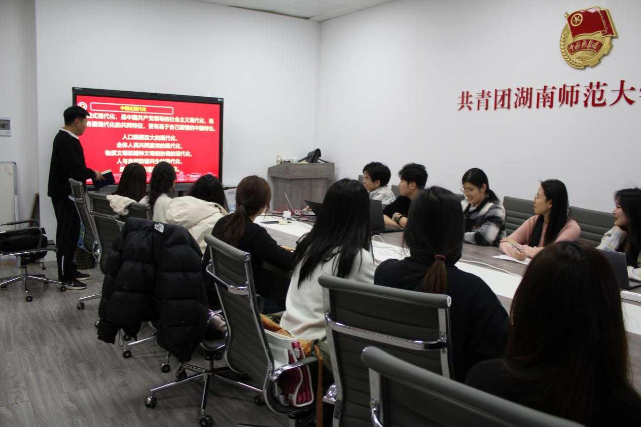 (通讯员 蔡慧 苏静怡)11月14日上午,我校第26届研究生支教团于励德楼团委会议室开展“强国复兴”主题理论学习和交流研讨活动。此次活动旨在引导成员们深入学习贯彻习近平新时代中国特色社会主义思想,增强团队凝聚力。研支团成员钱弘毅担任主讲人。