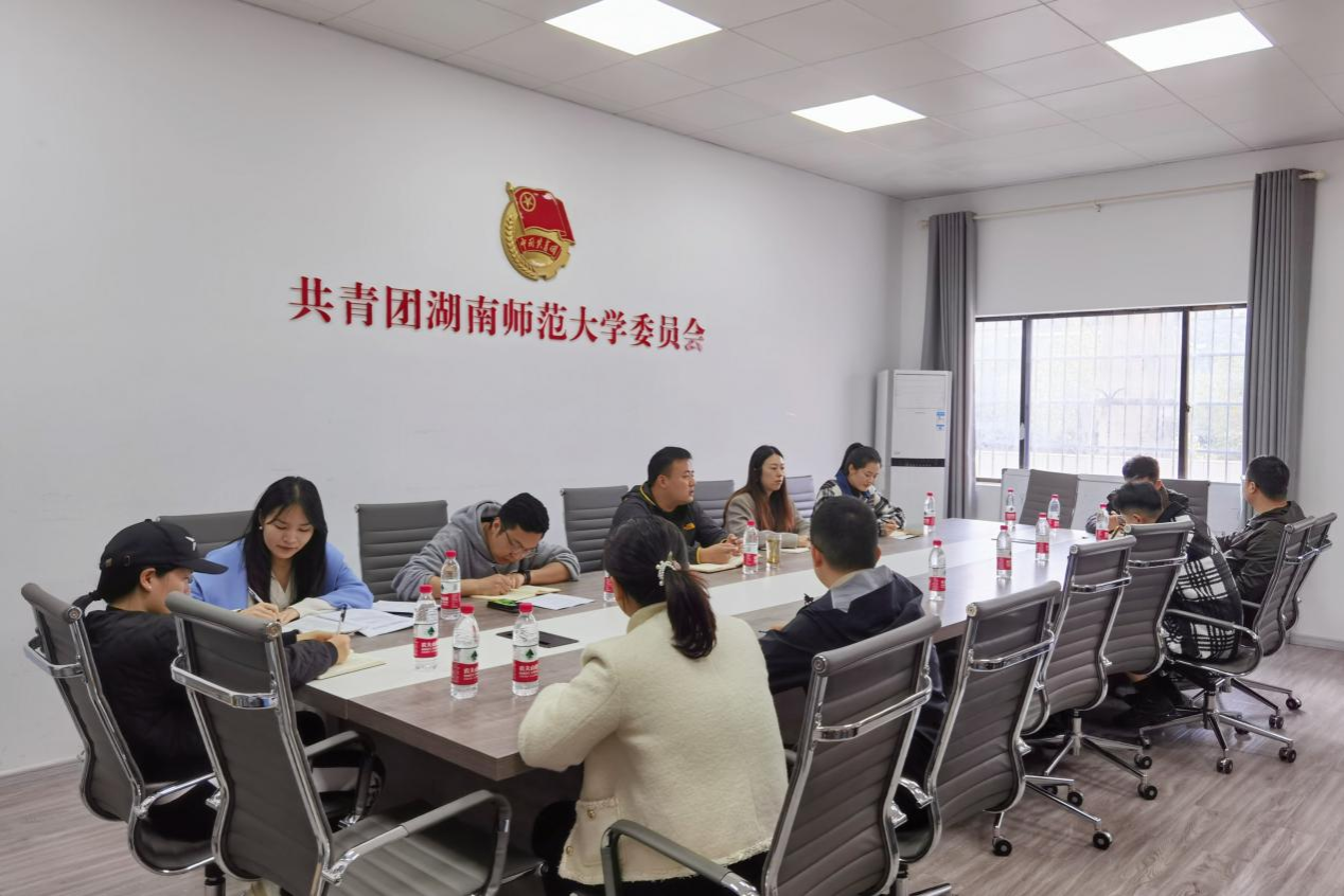 会议围绕四星大赛筹备、“挑战杯”“中国国际大学生创新大赛”、志愿服务活动、新团员发展等近期重点工作进行部署安排。校团委书记陈天嵩传达学习习近平总书记在湖南考察时的重要讲话和指示精神,勉励各位老师要注重提高学生知识文化素养,更要上好思政课,教育引导学生明德知耻,树牢社会主义核心价值观,立报国强国大志向,努力成为堪当强国建设、民族复兴大任的栋梁之才。