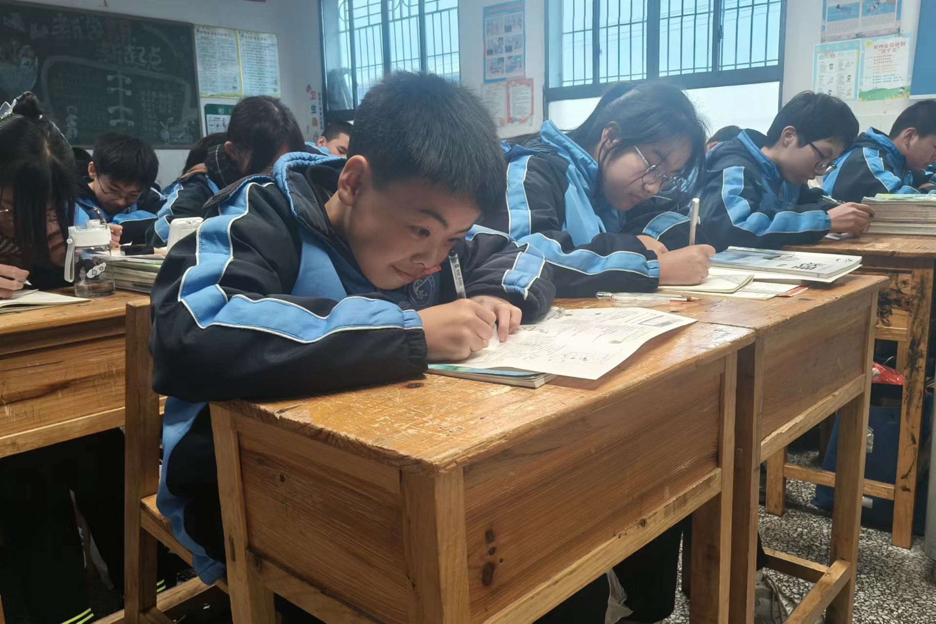 图为学生们在课堂上认真地完成老师留下的随堂作业。