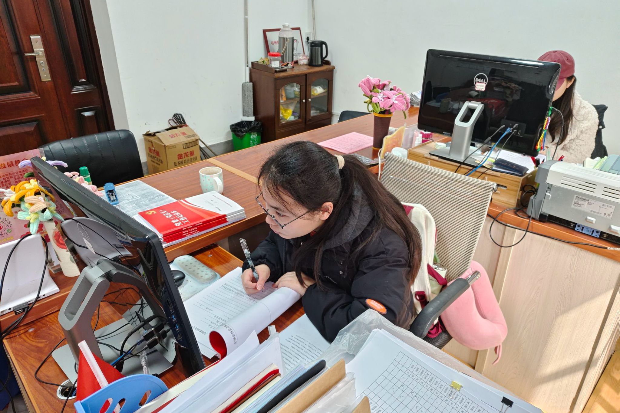岳龙社区志愿者在进行社区日志编写