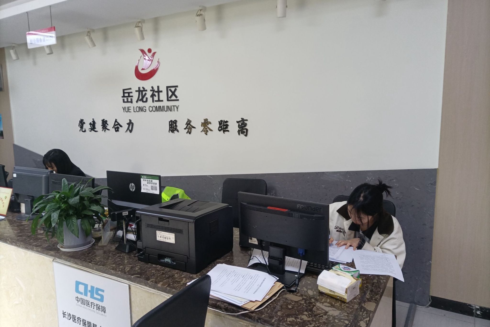 岳龙社区志愿者在社区咨询台工作