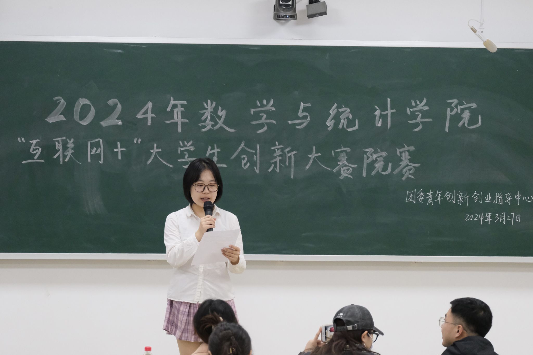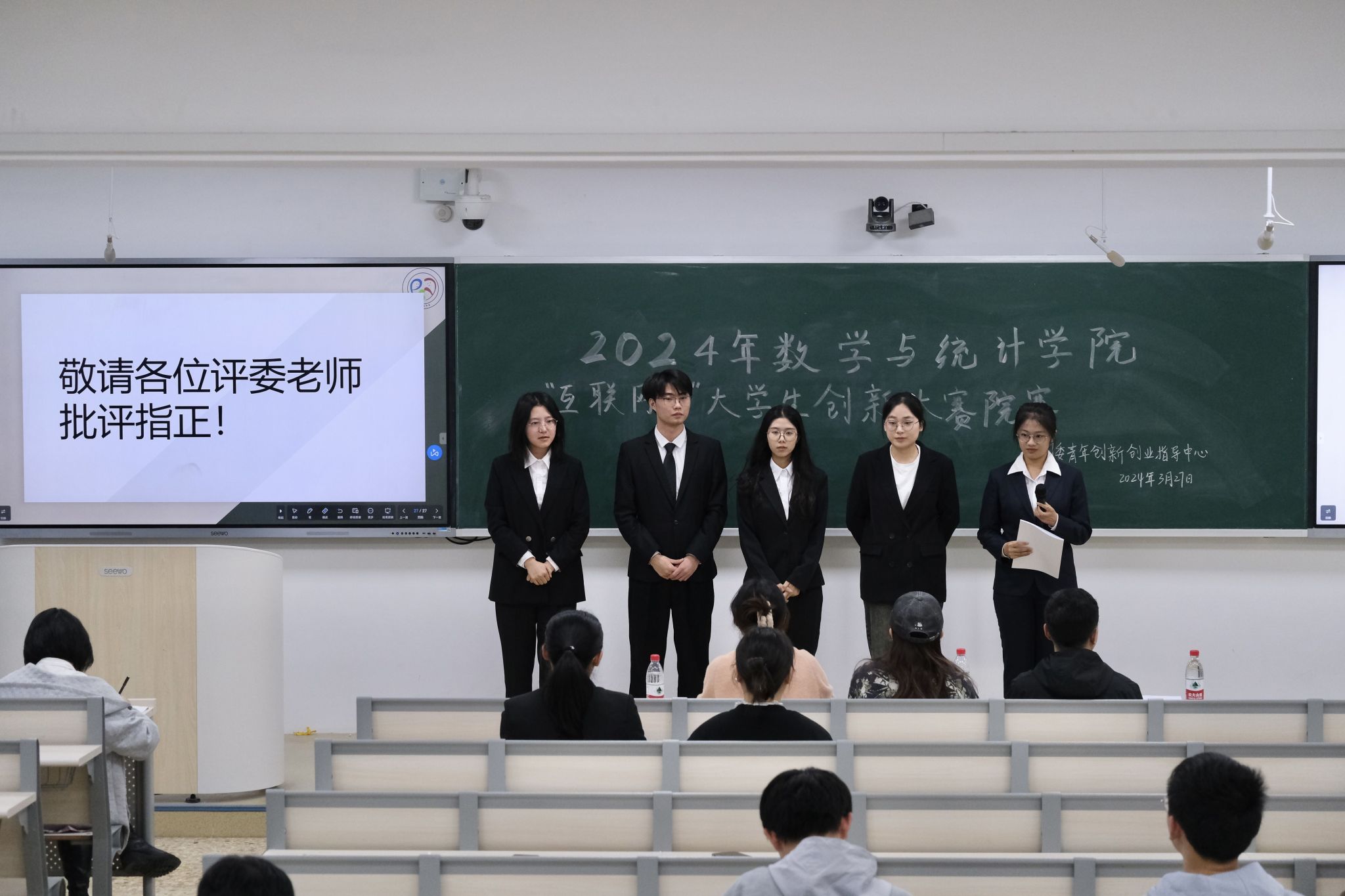 (通讯员 汤誉琳 岳佳玲 唐亘嫣)3月27日晚,数学与统计学院(以下简称“数统院”)团委青年创新创业指导中心(以下简称“青创中心”)于格物楼409教室举办中国国际大学生创新大赛院赛。团委指导老师肖惠卿、2021级辅导员周逸、2023级辅导员刘美担任此次比赛评委。学生会文艺部张琬鑫担任主持人。