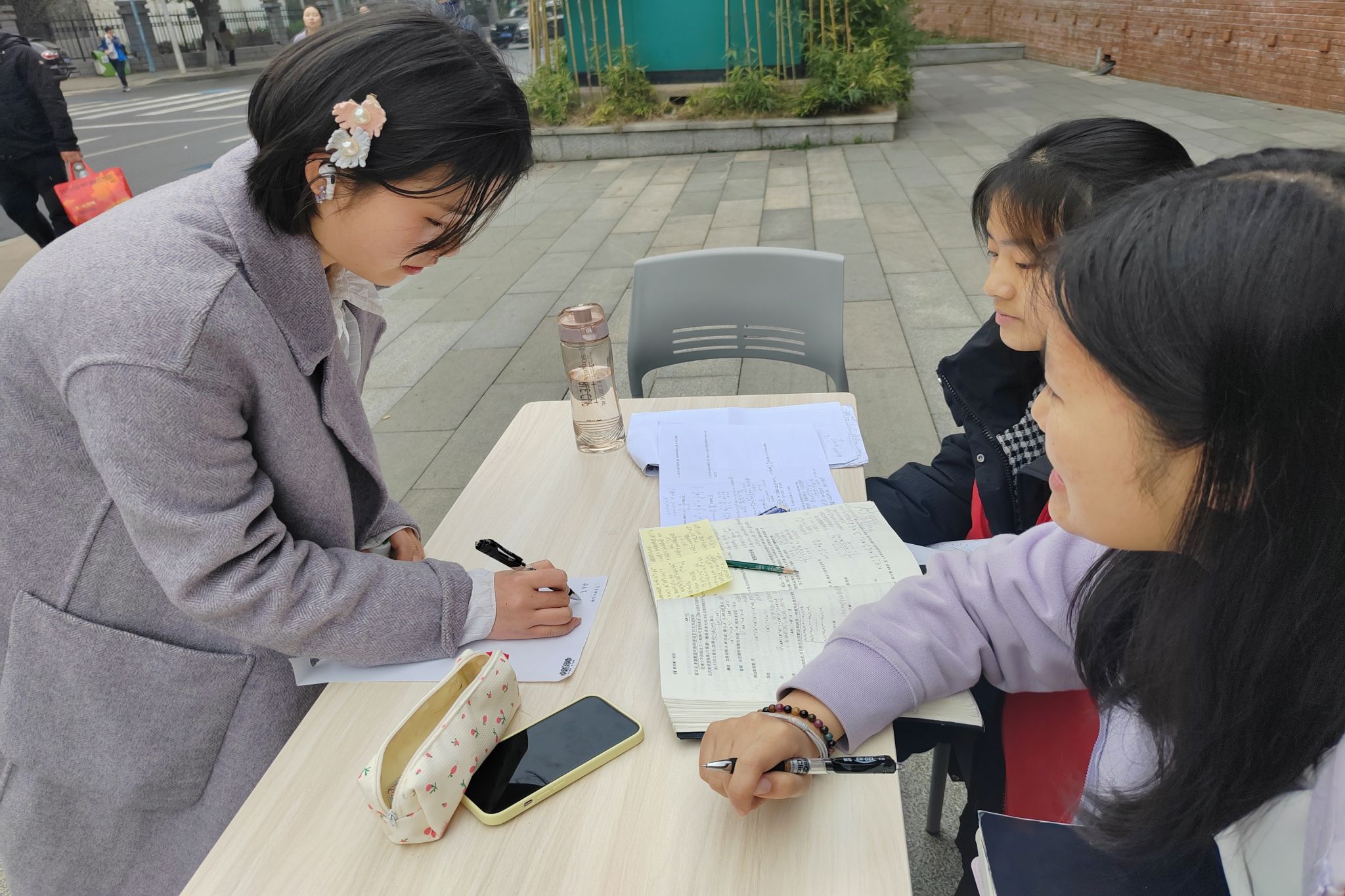图为路人丢失校园卡,于雷锋小站的彩色寻物启事榜登记个人信息。