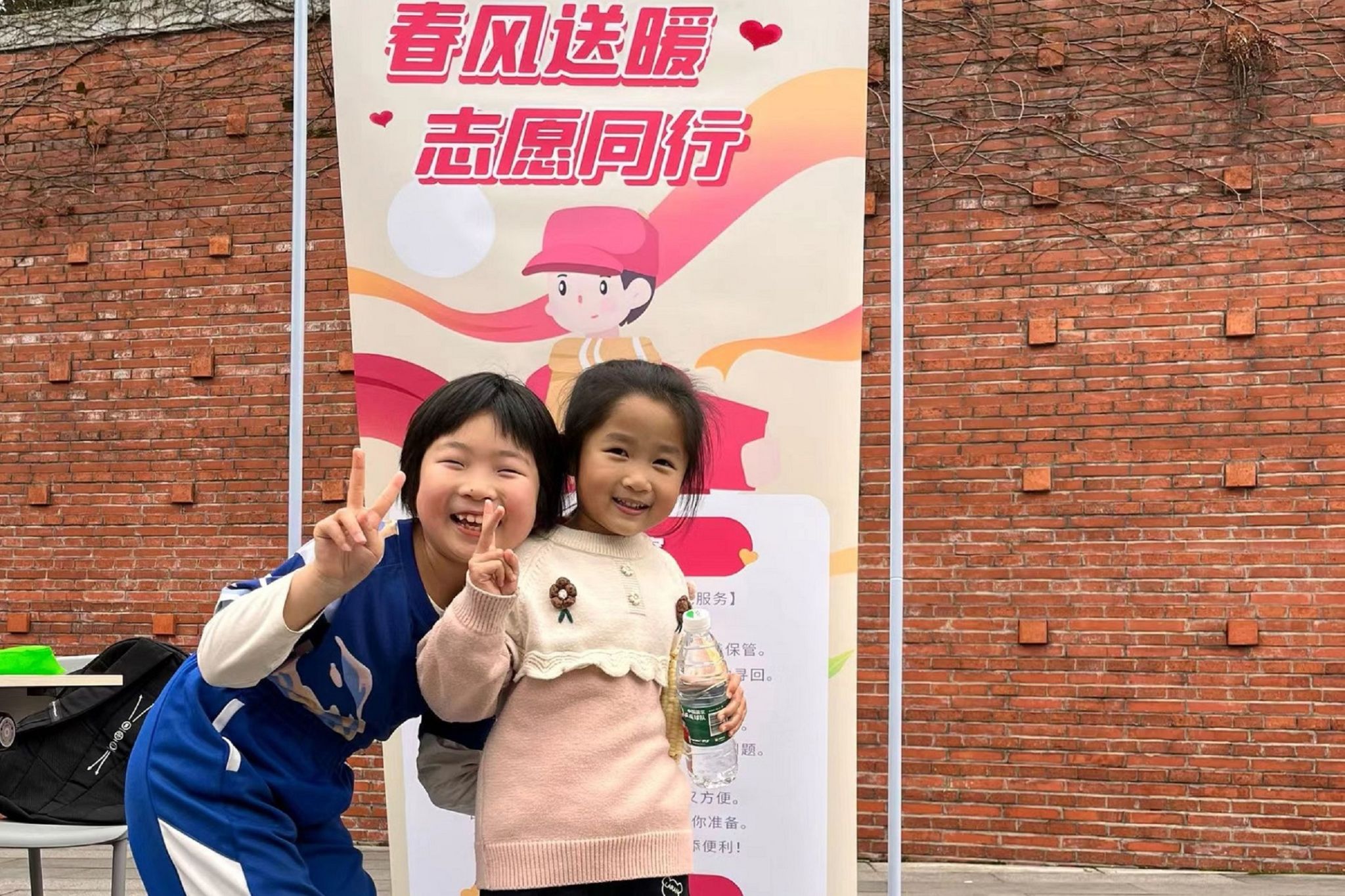 图为小学生同志愿者了解雷锋精神后,与活动站牌合影留念。