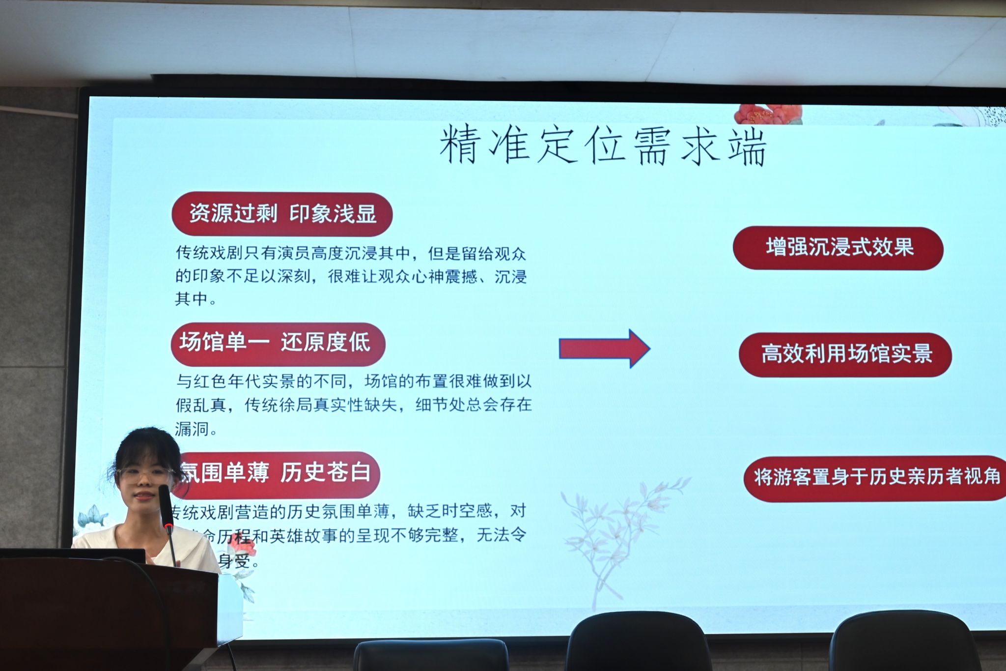 此次院赛共有7支队伍参加。各项目分别围绕红色文化、乡村振兴、非遗传承、生活与健康等主题进行项目答辩。汇报人具体阐述了参赛项目的选题初衷、实践路径、预期成果和未来发展规划,赛场气氛活跃热烈。