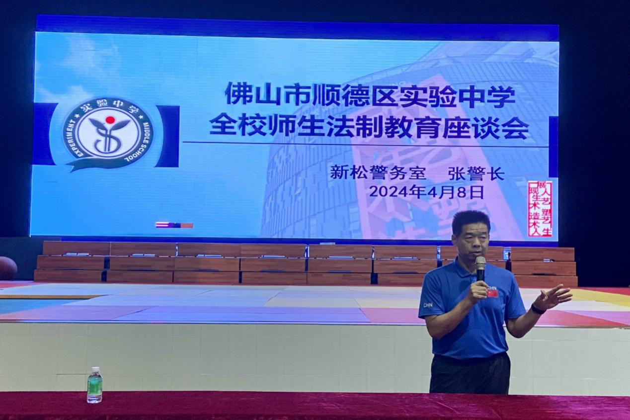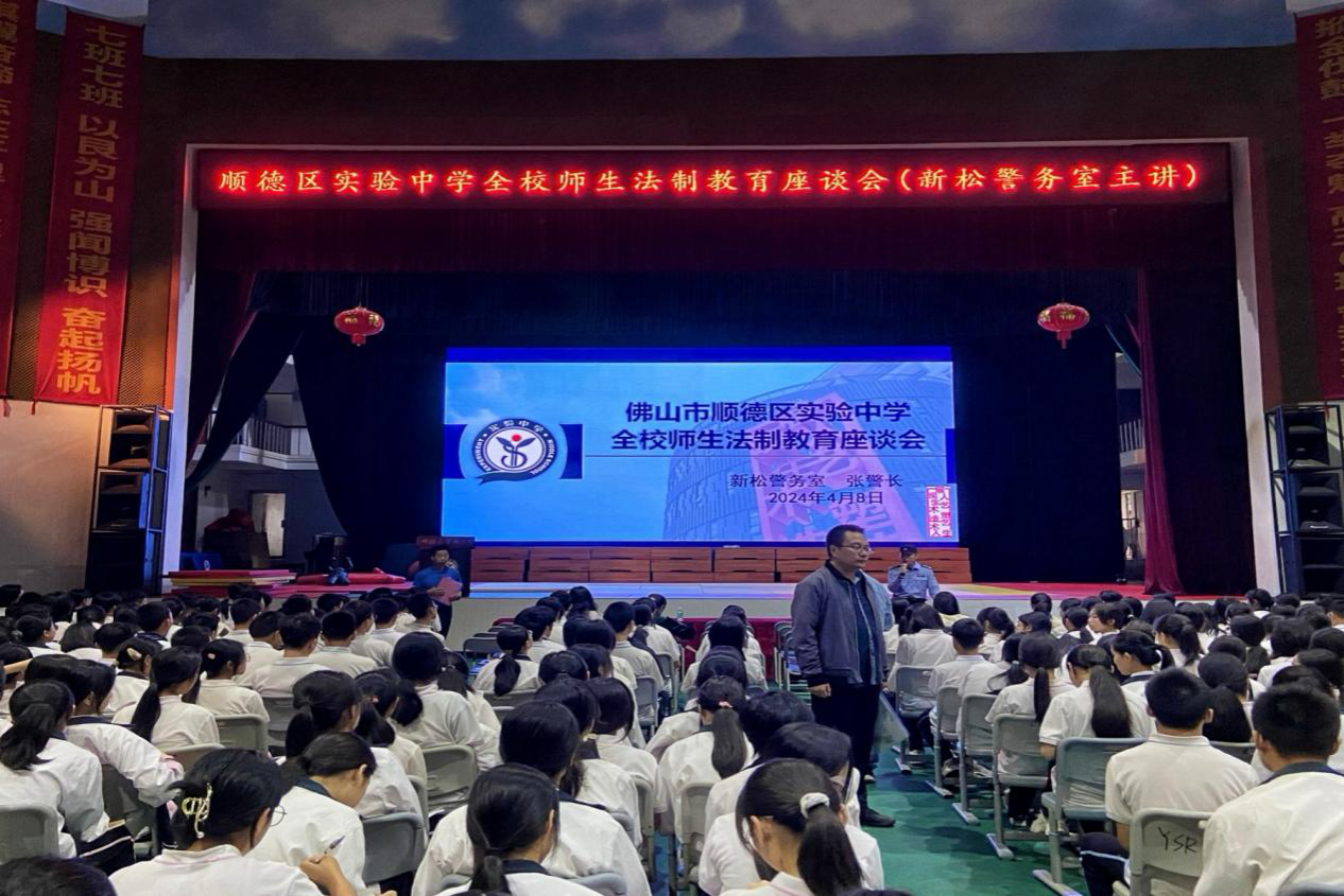(通讯员 向乐驰 阳湄)为增强中学生法律意识,构建平安校园,4月8日下午,文学院赴顺德实验中学实习队队员在礼堂参加法制教育座谈会。此次座谈会由顺德区实验中学成长处主任魏伟雄主持,新松警务室警长张俊瑄主讲。