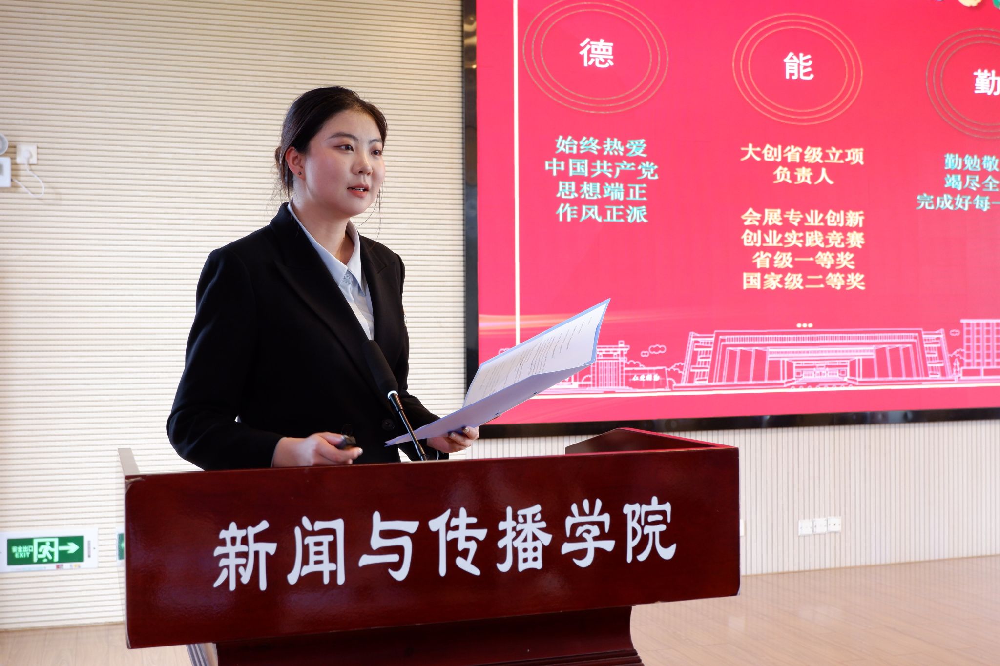 会议现场,九位学生干部依次上台述职,详细阐述了自己在任职期间的工作内容、工作成果以及未来工作规划。他们围绕各部门的业务内容,用具体的事例和详实的数据展示过去一年的工作成绩,总结了工作成效和亮点,例如积极发展工作优势,改善优化部门运作流程等,并在报告中阐述了工作反思及对新学期的工作思考,充分体现了“察实情、求实效、做实事、展实力 ”的工作作风。