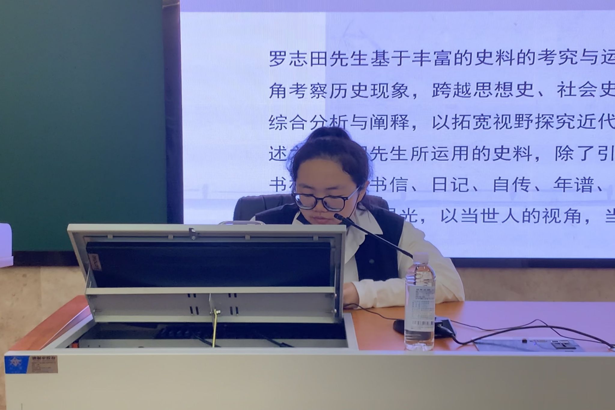 讲堂伊始,主讲人对陈旭麓、罗志田、费孝通、王明珂等优秀学者及其相关著作进行介绍解析,说明史学名著阅读的必要性,鼓励同学们以动态的眼光看待历史,秉持求知的精神对待名著。随后,她从具体内容、格式调整出发,阐述读书报告的定义分类、撰写要点与难点。紧接着,主讲人谈到口述史料对于历史学研究的重要性,介绍其定义与性质的同时,分享自己整理与利用口述史料的方法和注意事项。最后,她提出,史学书籍的选取与读书报告的撰写是密不可分的,同学们应在阅读中思考历史问题,在写作中梳理研究思路。