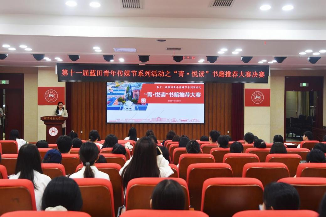 (通讯员 甘新悦 文静 汪子熙)4月28日晚,商学院在中和楼129报告厅举办第十一届蓝田青年传媒节系列活动之“青·悦读”暨商学院“鉴牍杯”书籍推荐大赛决赛。校环境教育中心副主任李姣、校心理健康教育与咨询中心老师刘佳怡、商学院学生工作办公室老师骆芷蓉参与此次比赛。2022级会计学班雷茜龄担任比赛的主持人,各学院相关人员参加此次比赛。