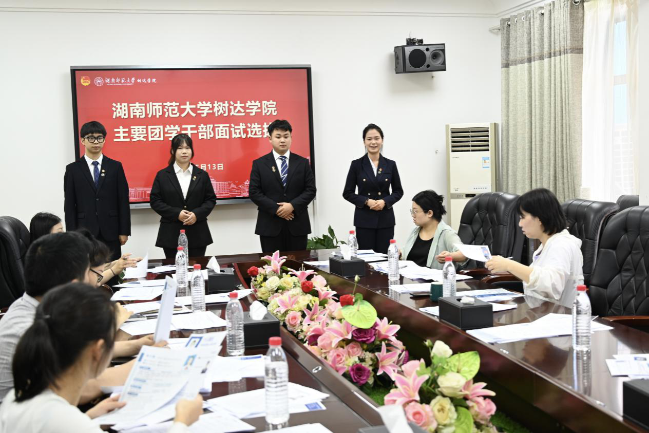 (通讯员 肖雅婷 李恩哲)5月13日上午,树达学院于办公楼302开展了2024-2025学年主要团学干部面试选拔。团委书记胡蓉、学工办主任李青、团委副书记龙珊、学工办副主任李小燕以及各系辅导员老师担任此次选拔面试的面试官。