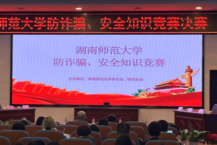 (通讯员 李雨霏 刘家玮 袁理)5月16日下午,由校学生会和研究生会联合主办的“2024年权益月系列活动——防诈骗、安全知识竞赛”决赛在新闻与传播学院四楼书山论坛举办,我校保卫处处长黄松柏、后勤管理处处长黄智勇、研究生院副院长胡水清、校团委书记陈天嵩、校团委副书记胡滢出席此次活动。