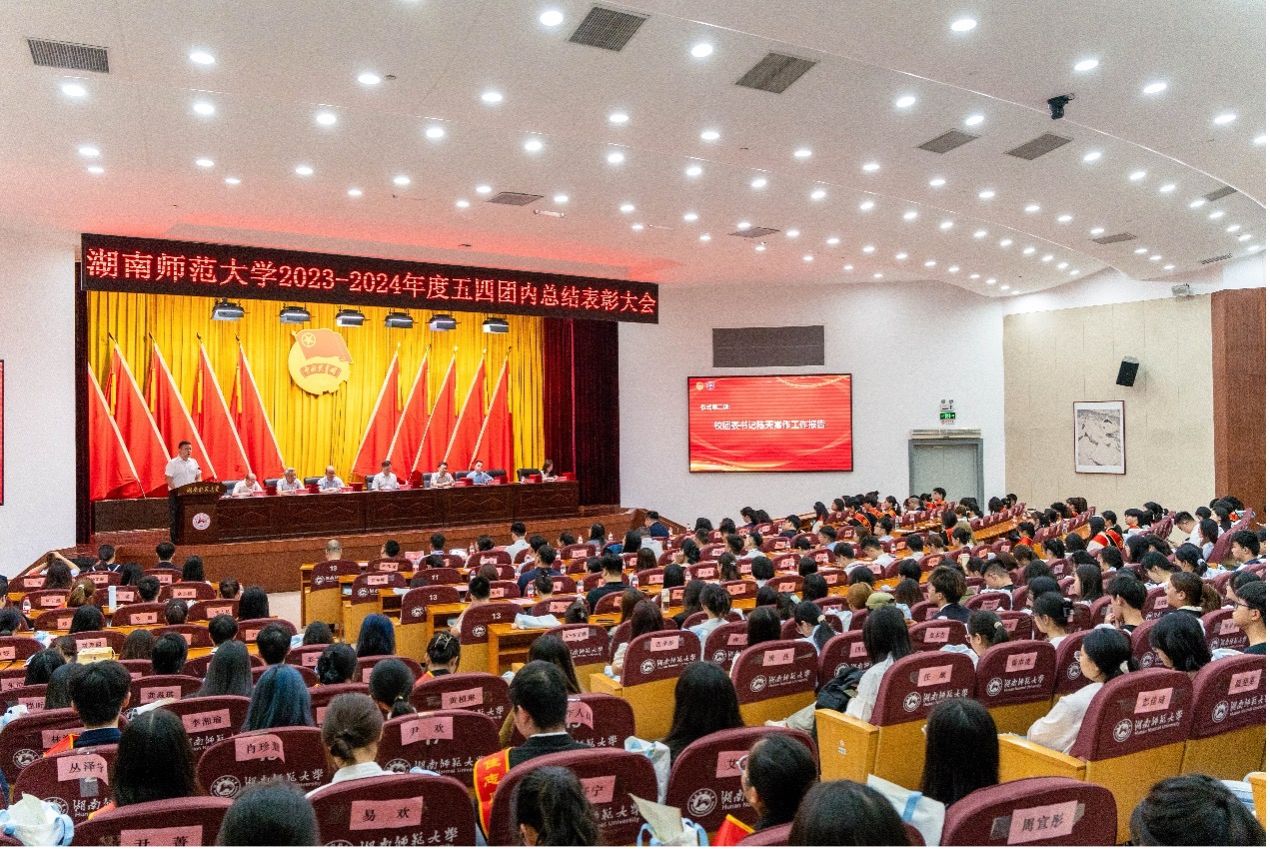大会在雄壮的国歌声中拉开序幕。校团委书记陈天嵩作工作汇报。学生工作部部长鲁良宣读《关于表彰2023-2024年度五四团内先进集体和优秀个人的决定》。