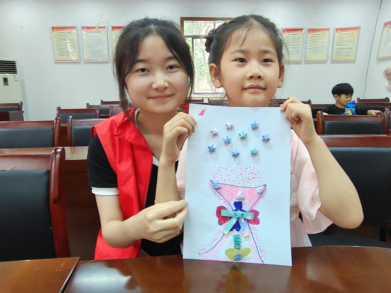 在活动准备阶段,社区组织志愿者到社区周边宣传,邀请小朋友们参与活动。活动开始,社区开展未成年安全保护主题讲座,志愿者围绕交通安全、防火安全、防溺水安全、防灾减灾和个人防护五项内容对小朋友们进行未成年人安全教育,提醒小朋友们在生活中要注意道路安全、食品安全、家居安全等。随后,社区老师为小朋友们分发彩纸和绘画笔,小朋友们都发挥想象,结合自己在讲座中学习到的有关知识,在志愿者的陪同下,用马克笔绘画或用彩纸折叠出以未成年安全为主题的手工作品。最后,小朋友们向大家展示和讲解自己的成品。