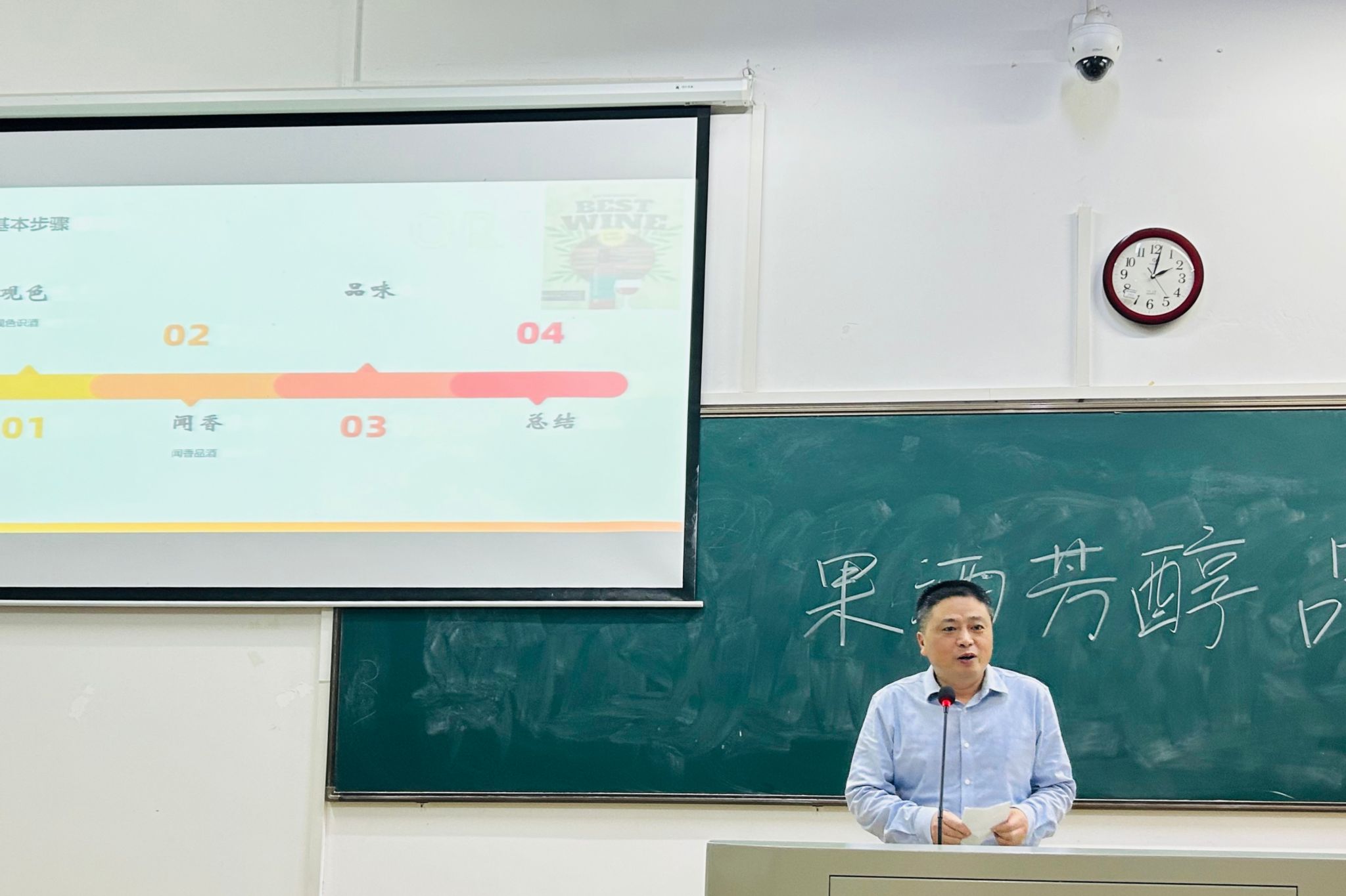 此次活动主要分为品酒规则及方法介绍和果酒品鉴两个部分。主持人通过PPT介绍品酒的步骤,即“一闻,二看,三品,四论”。主讲人进行酒知识的讲解和品酒指导,并为同学们详细介绍果酒的制作工艺、品鉴技巧等方面的知识,如用于酿酒的果干需要达到适合发酵的干湿程度。随后,同学们按照品酒四步——“观色、闻香、品味、总结”逐一品鉴果酒,观察果酒的色泽、香气和口感,品味果酒的味道,并记录下每一种果酒的不同之处,如酸甜程度、回味的浓郁程度等的差别。同学们表示,此次活动使他们对果酒有更加深入的了解,为他们带来一次独特的味觉体验。