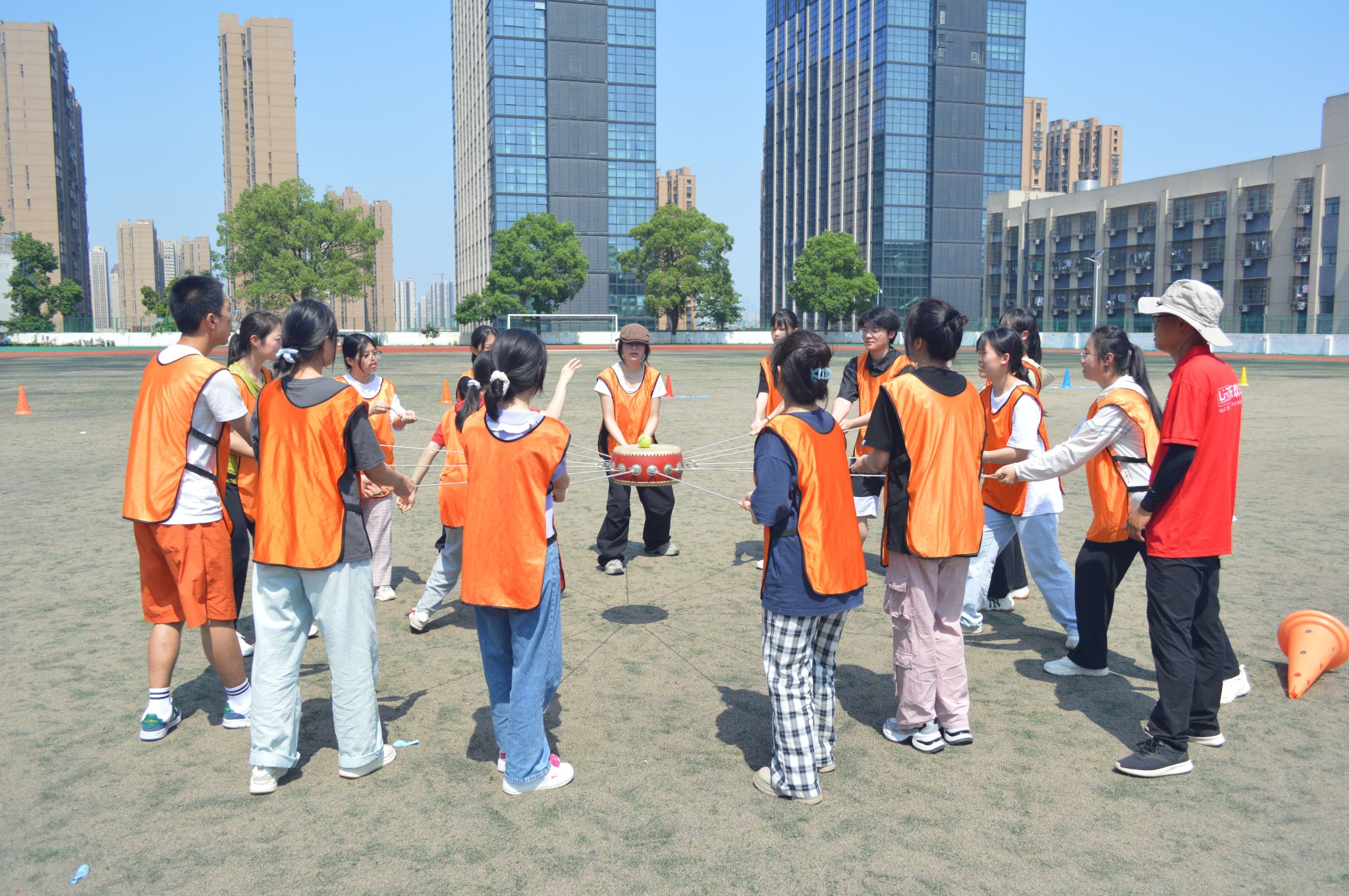 此次运动会共有6个比赛项目,分别是勇往直前、众志成城、趣味飞盘、万众一心、快乐传递以及拔河比赛。在“勇往直前”竞赛环节中,参赛者们默契有加,共同向终点冲刺,汗水浸透了衣衫,彰显出青春的蓬勃力量;“众志成城”项目则更考验团队协作能力,各支队伍紧密团结,彼此协作无间,共同克服重重障碍;“趣味飞盘”挑战项目要求参赛者精准投掷飞盘方能得分,运动员专心致志,飞盘在空中划过一道道优美的弧线后稳稳落入框中;“万众一心”是团队合作项目和趣味性运动相结合的一项比赛,运动员们手拉绳子,围成一圈进行颠球游戏;“快乐传递”项目则通过呼啦圈传递的方式,培养队员之间的默契与协作能力,整个比赛过程洋溢着欢乐与和谐的氛围。