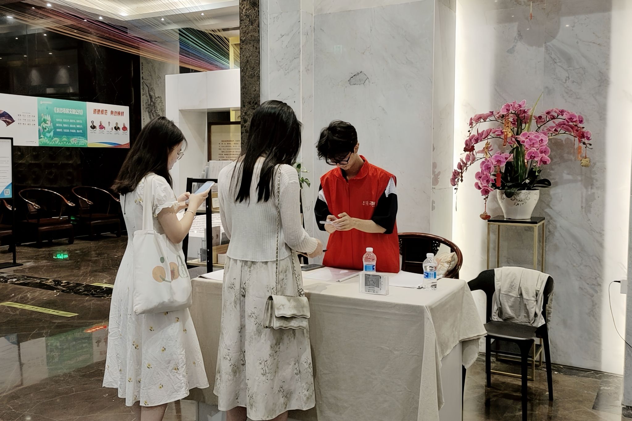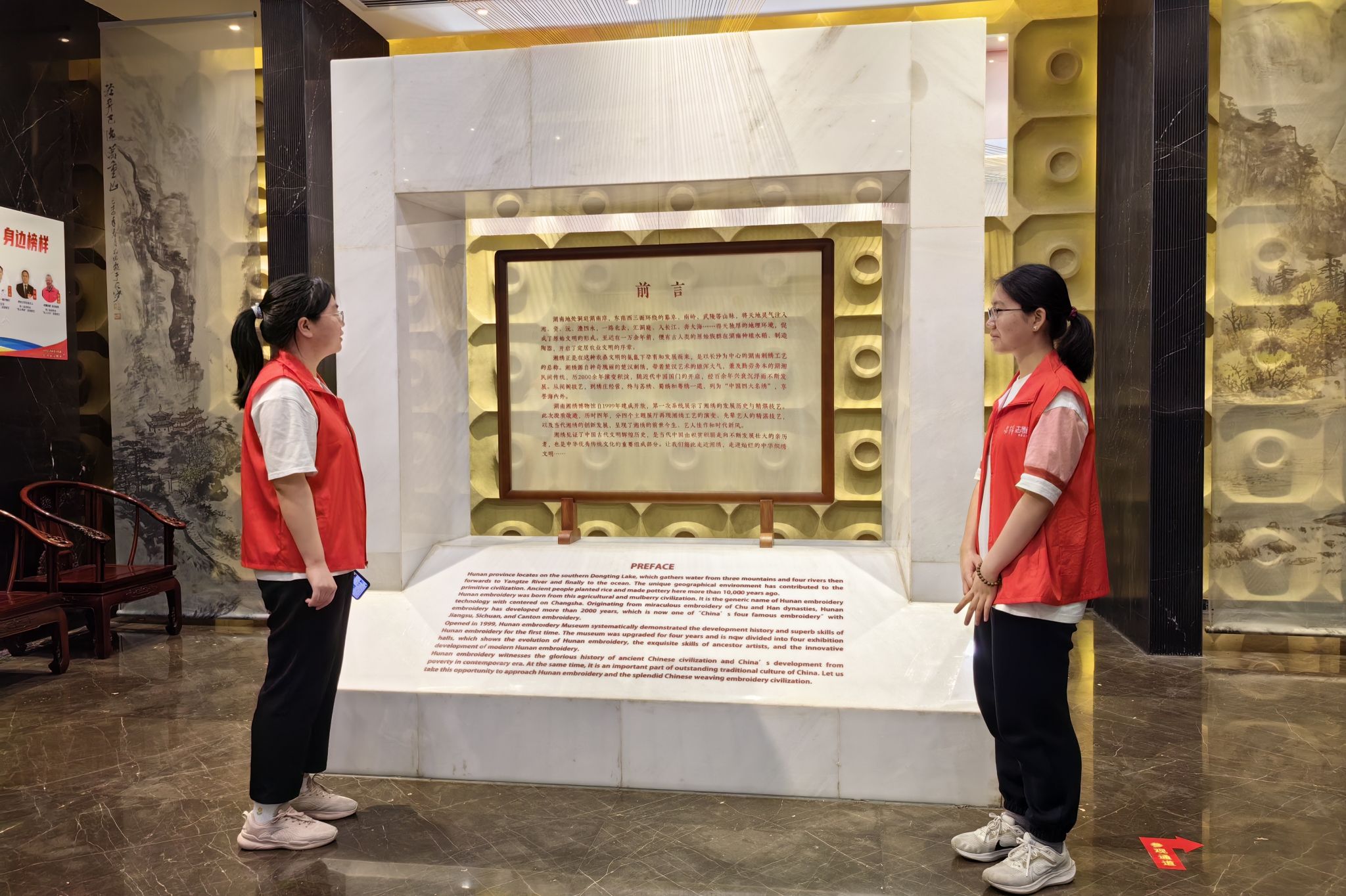 活动当天,志愿者按规定时间到达湖南湘绣博物馆,并与工作人员确定活动流程和具体事宜,确保活动有序进行。部分志愿者在接受简短培训、掌握必要接待技能与展览知识后,于规定区域进行访客接待,他们登记游客出入的情况,解答访客的疑问,并引导游客参观。另外一部分志愿者积极维护馆内安全,他们协助工作人员监督游客行为,维护展品安全和展览秩序。同时,志愿者与博物馆工作人员实时保持联系,确保能及时响应突发事件。活动结束后,志愿者合影留念。