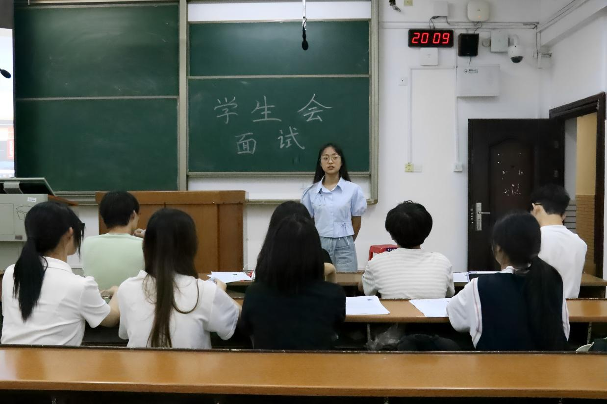 (通讯员 胡曼诗 杨浩天 黄美绮)5月28日晚,数学与统计学院(以下简称“数统院”)于格物楼开展第二十三届团学组织委员选拔面试。第二十二届团学组织委员担任面试官,候选人于209教室候场,并分别于102、103、106、107教室进行面试。