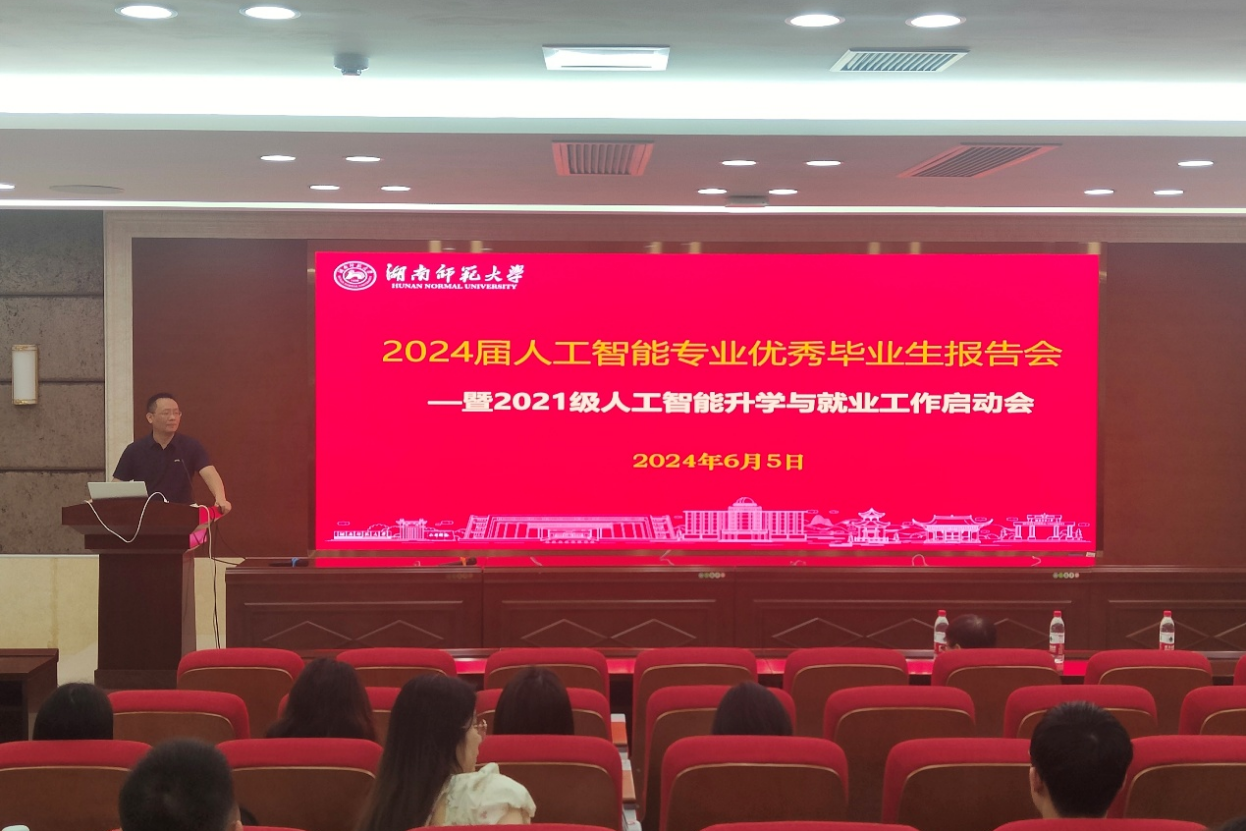 (通讯员 朱涛 汪璐璇)为促进人工智能专业建设,帮助2021级人工智能专业学生提前规划升学与就业,人工智能系于6月5日上午在中和楼342报告厅召开了2024届优秀毕业生报告会暨2021级人工智能专业升学与就业工作启动会。会议邀请了2020级人工智能专业毕业生艾绍斌、章智恒、张椿瑞、罗雨薇,分别分享他们在就业、保研、考研、留学方面的成功经验。副院长刘相滨、人工智能系主任王润民、副主任江沸菠出席会议,会议由王润民主持。