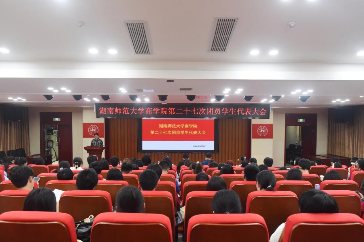 (通讯员 历彦孜 周昕芮 汪子熙)6月6日下午,商学院于中和楼129报告厅召开第二十七次团员学生代表大会。校团委书记陈天嵩、学院党委书记何勇、党委副书记刘杰出席此次会议。商学院学工办老师和全体团员学生代表参与此次会议。会议由院团委书记郭书畅主持。