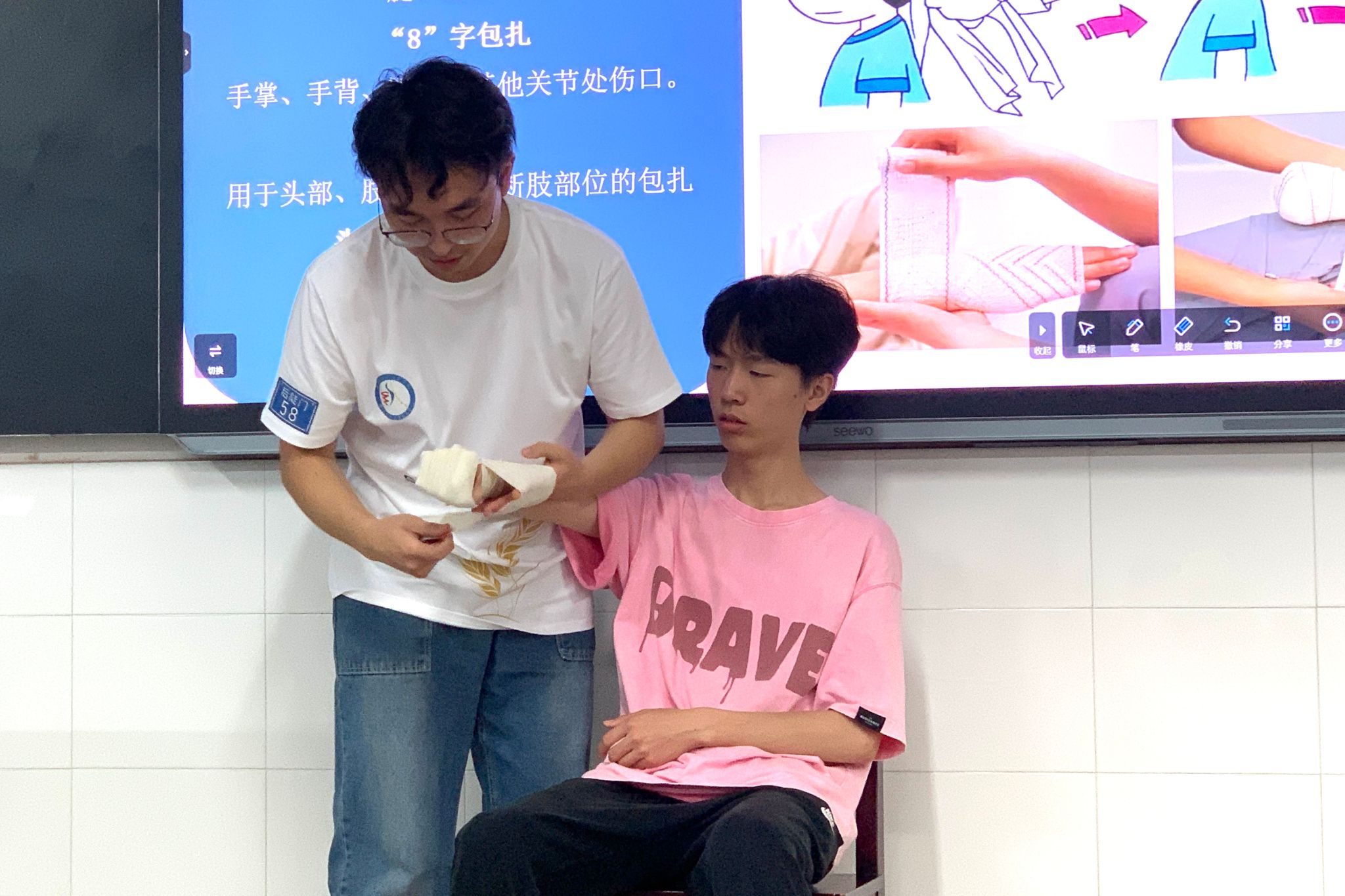 此次活动围绕海姆立克急救法、止血包扎技巧及推拿手法三大核心技能展开。