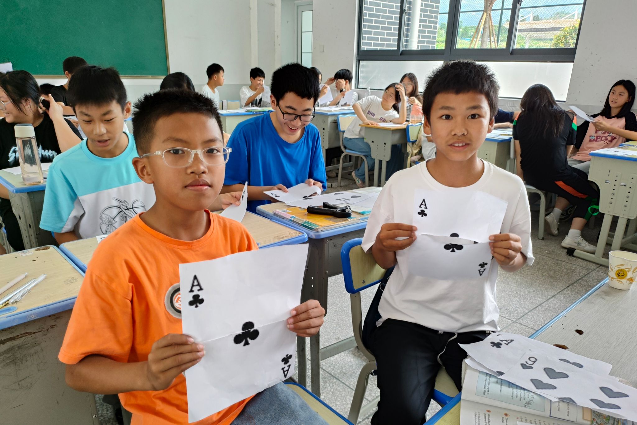 (通讯员 廖芮 王亦菲)为增强学生对数学的学习兴趣,7月10日上午,数学与统计学院(以下简称“数统院”)赴湖南省岳阳市平江县暑期社会实践团(以下简称“幕阜行旅”)于平江县第十中学开展“扑克牌里的数学奥秘”主题课堂,平江县第十中学八、九年级部分学生参与此次课堂。