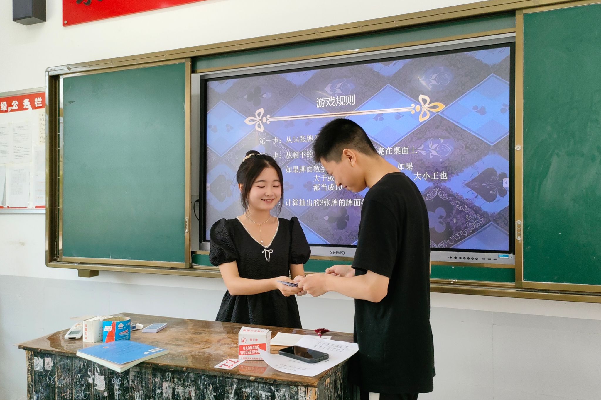 活动开始,授课老师向同学们介绍扑克牌的历史和不同扑克牌蕴含的意义以及代表的人物等。在讲解“十全十美”魔术游戏规则后,授课老师邀请一名同学参与配合,同学们都积极举手,主动配合,共同完成了扑克魔术表演。随后,同学们在老师的带领下,利用提前分发好的纸牌,按照步骤完成了春晚魔术表演。授课老师对两个魔术进行游戏解密,讲解其蕴含的数学知识,并延伸介绍了“约瑟夫斯问题”,最后解答同学们的相关问题。同学们表示此次课堂让他们认识到了数学在不同领域的作用,让他们有兴趣去探索更多数学奥秘。
