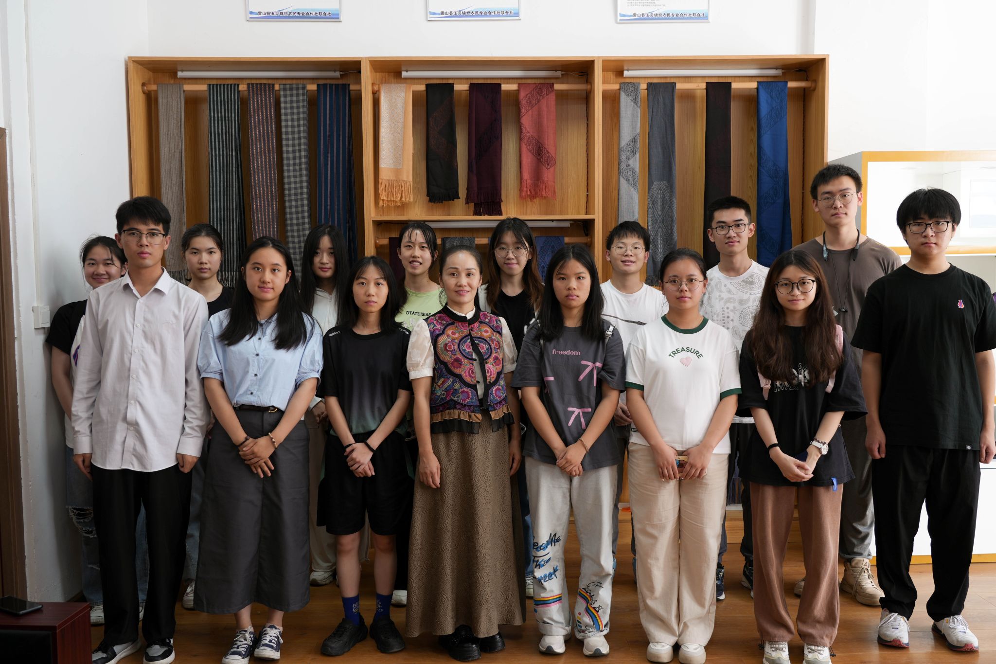 雷山县锦鸡绣业有限公司负责人甘小芝与团队成员合影