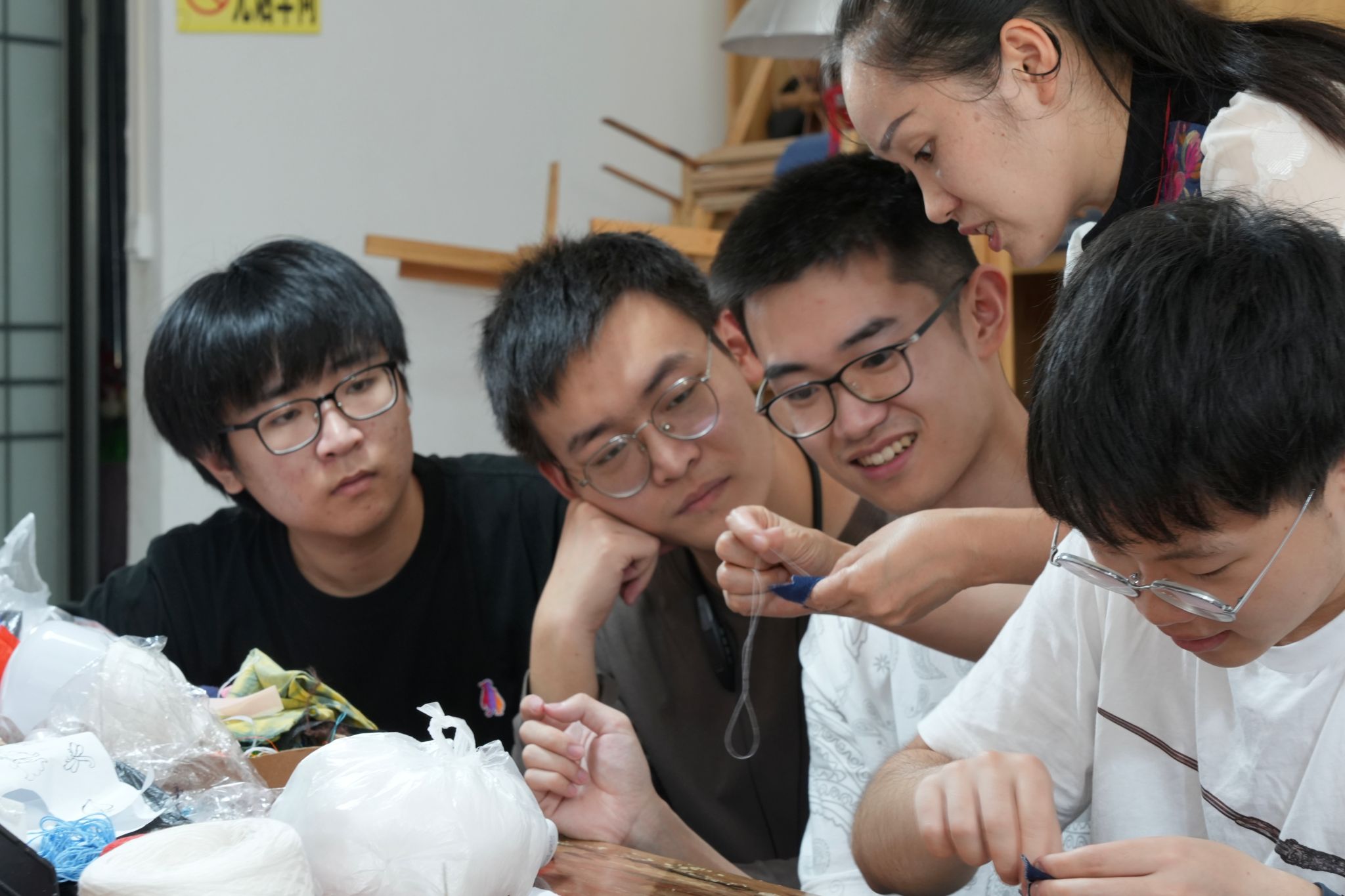 在甘小芝的带领下,团队成员参观了其公司的部分生产车间,了解了苗绣产品工艺制作的相关流程。与此同时,团队成员在甘小芝的指导下亲自体验了苗绣的相关工艺手法,切实感受到苗绣产品手工制作中的不易。
