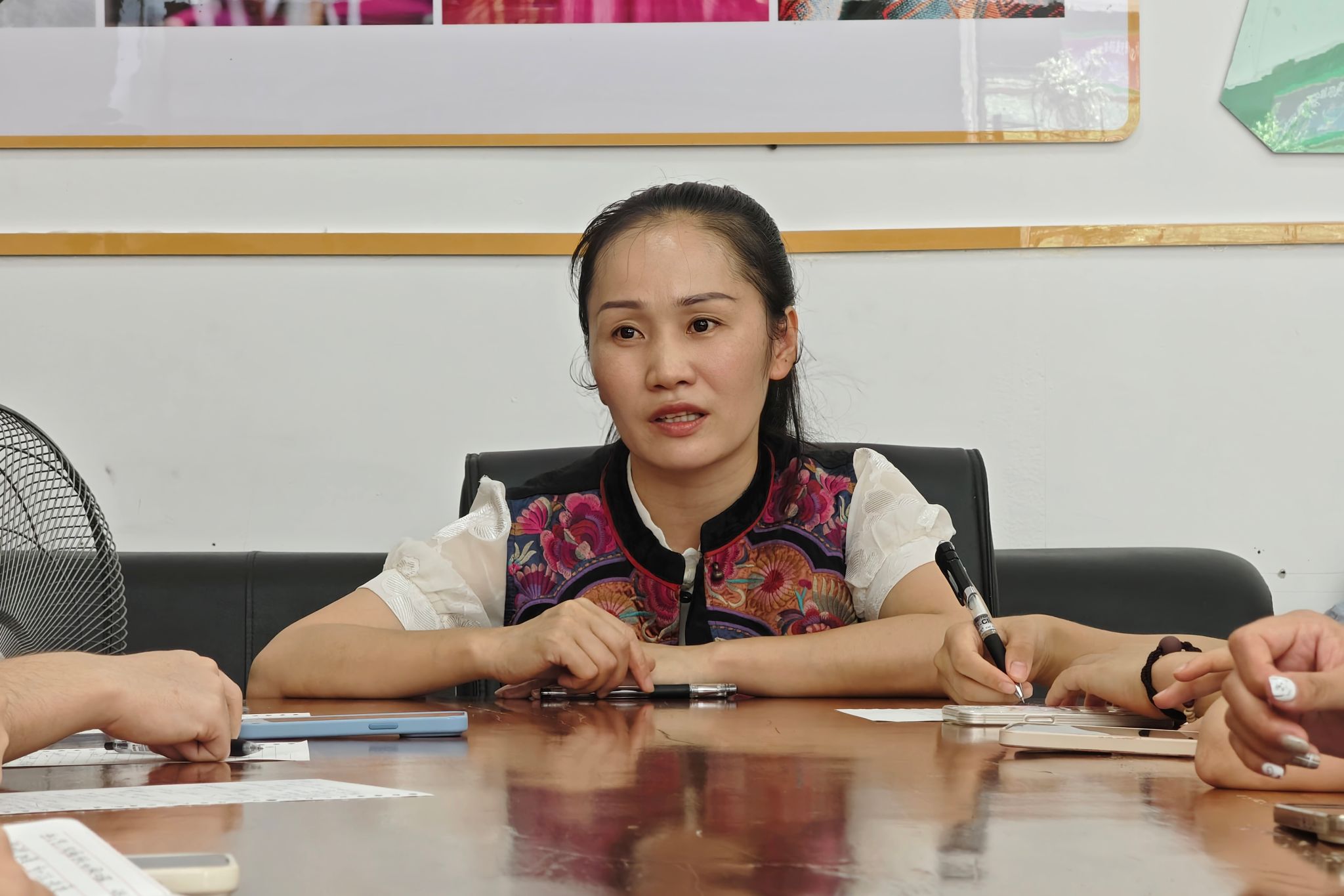团队成员对雷山县锦鸡绣业有限公司负责人甘小芝进行采访