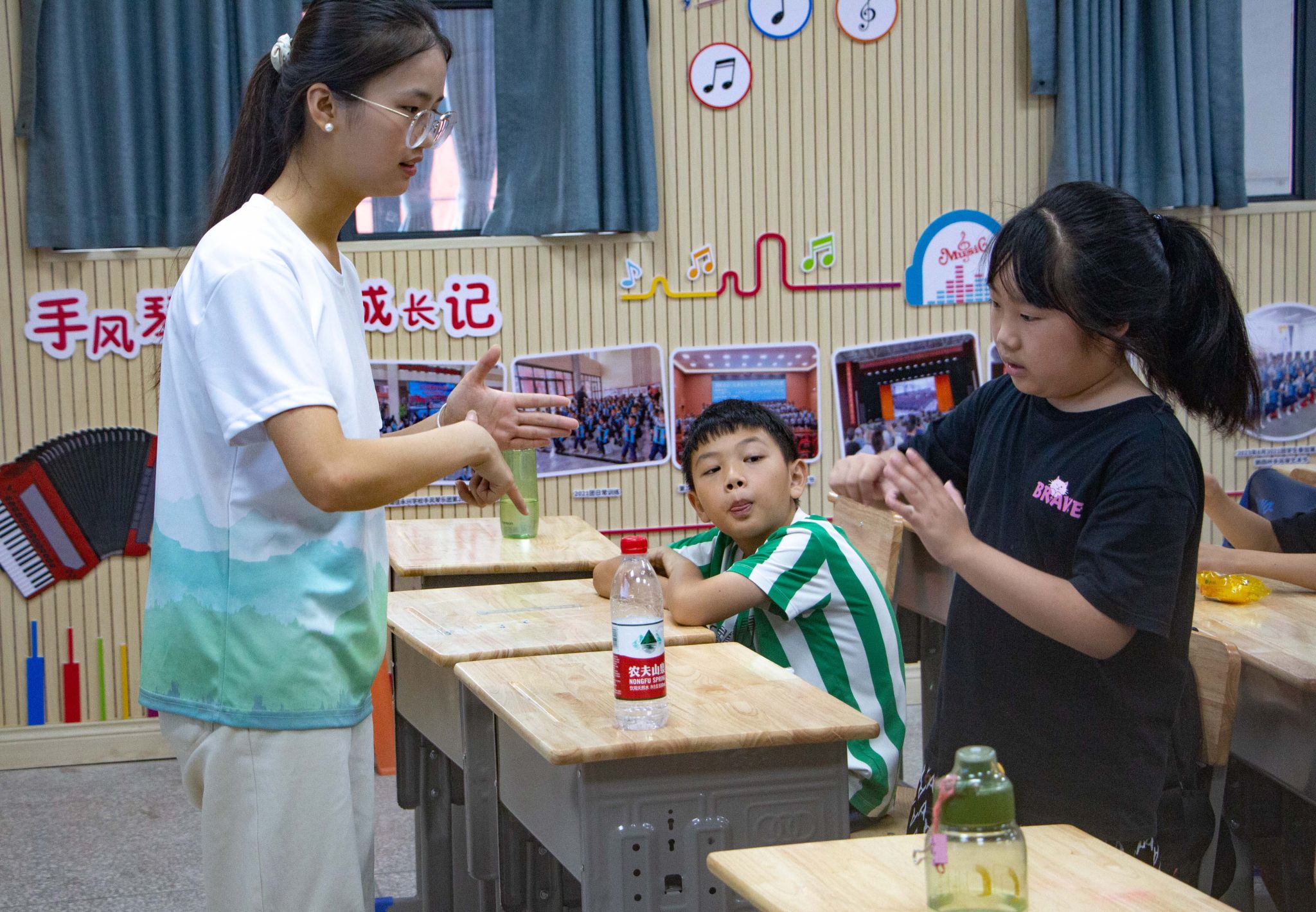 学生们学习手语动作