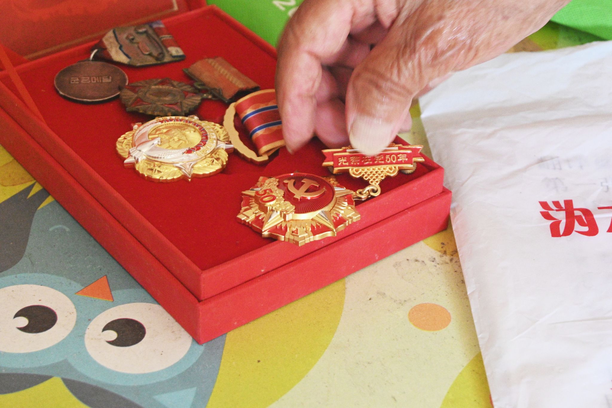 张迪泉向成员展示勋章和证书