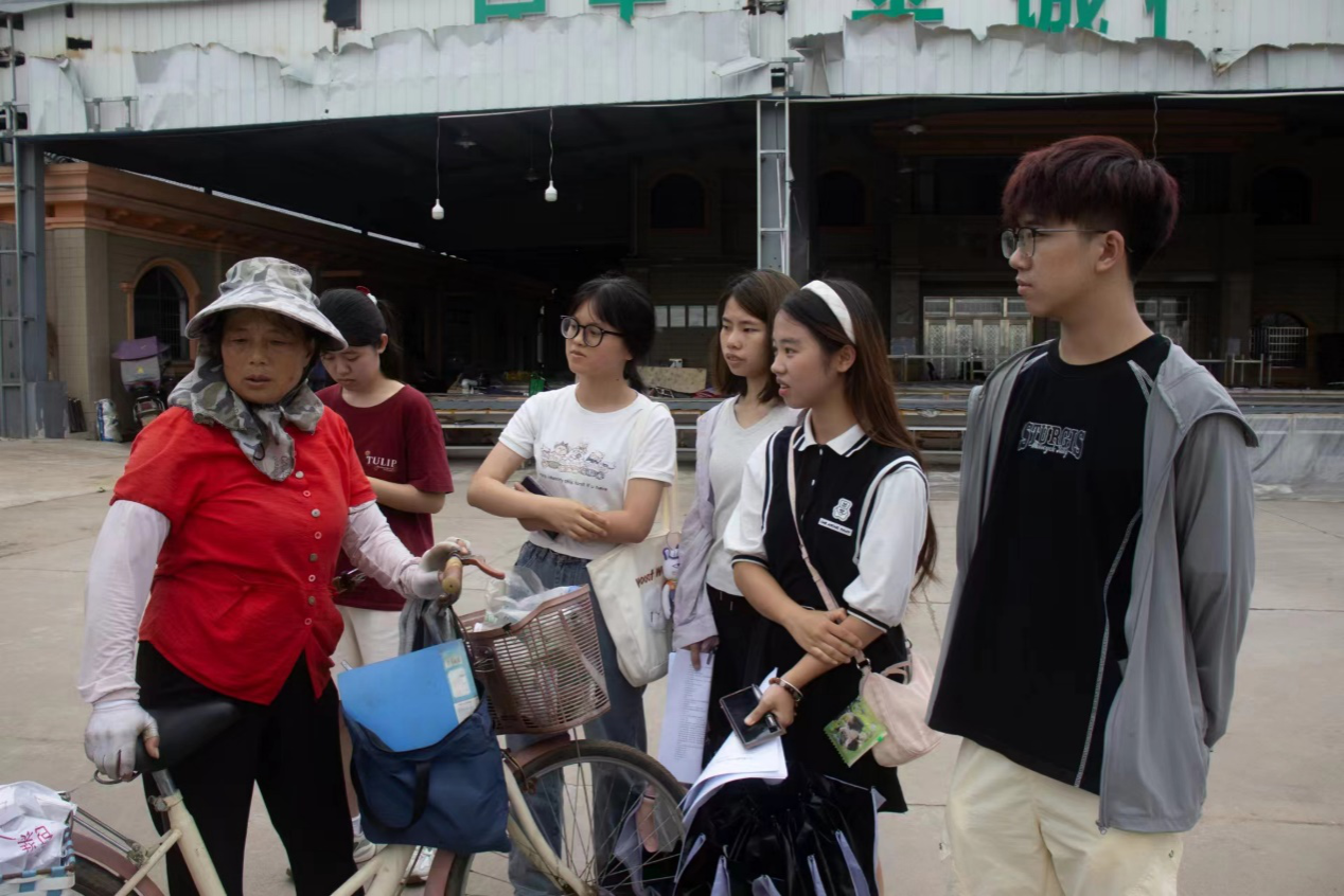成员们对园内工人进行采访