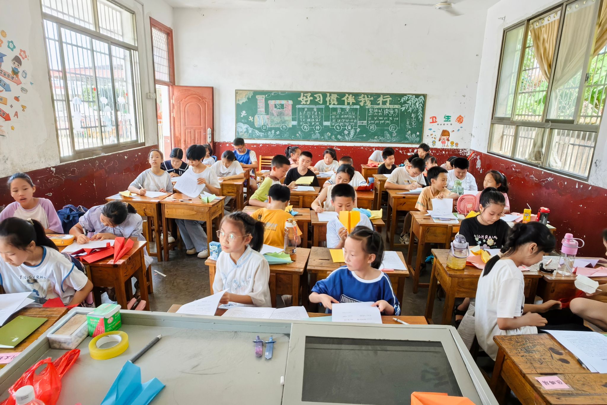孩子们学习折纸飞机