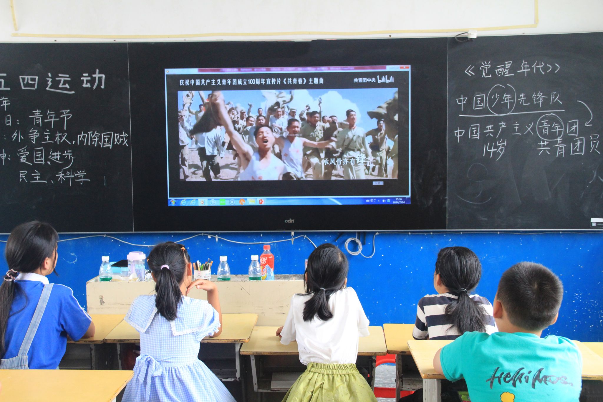 学生们观看五四主题视频