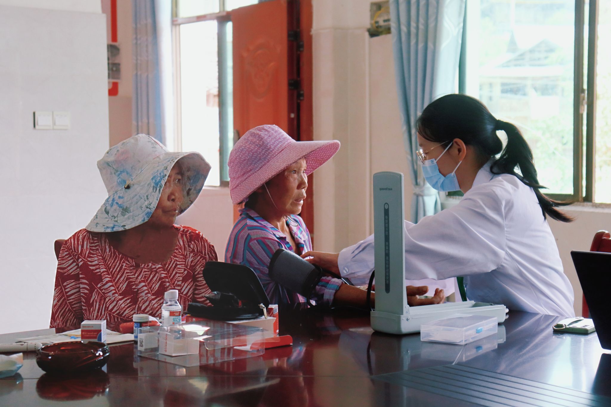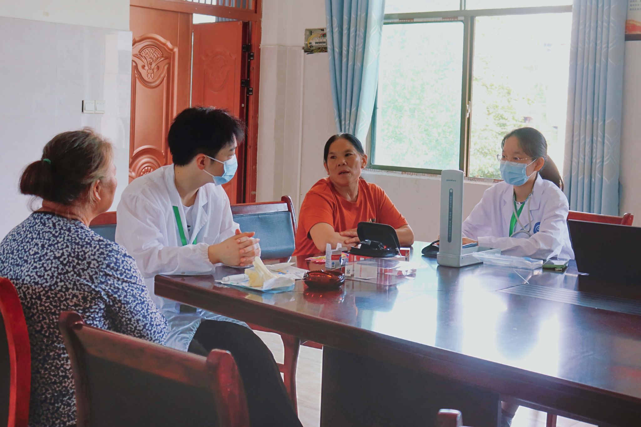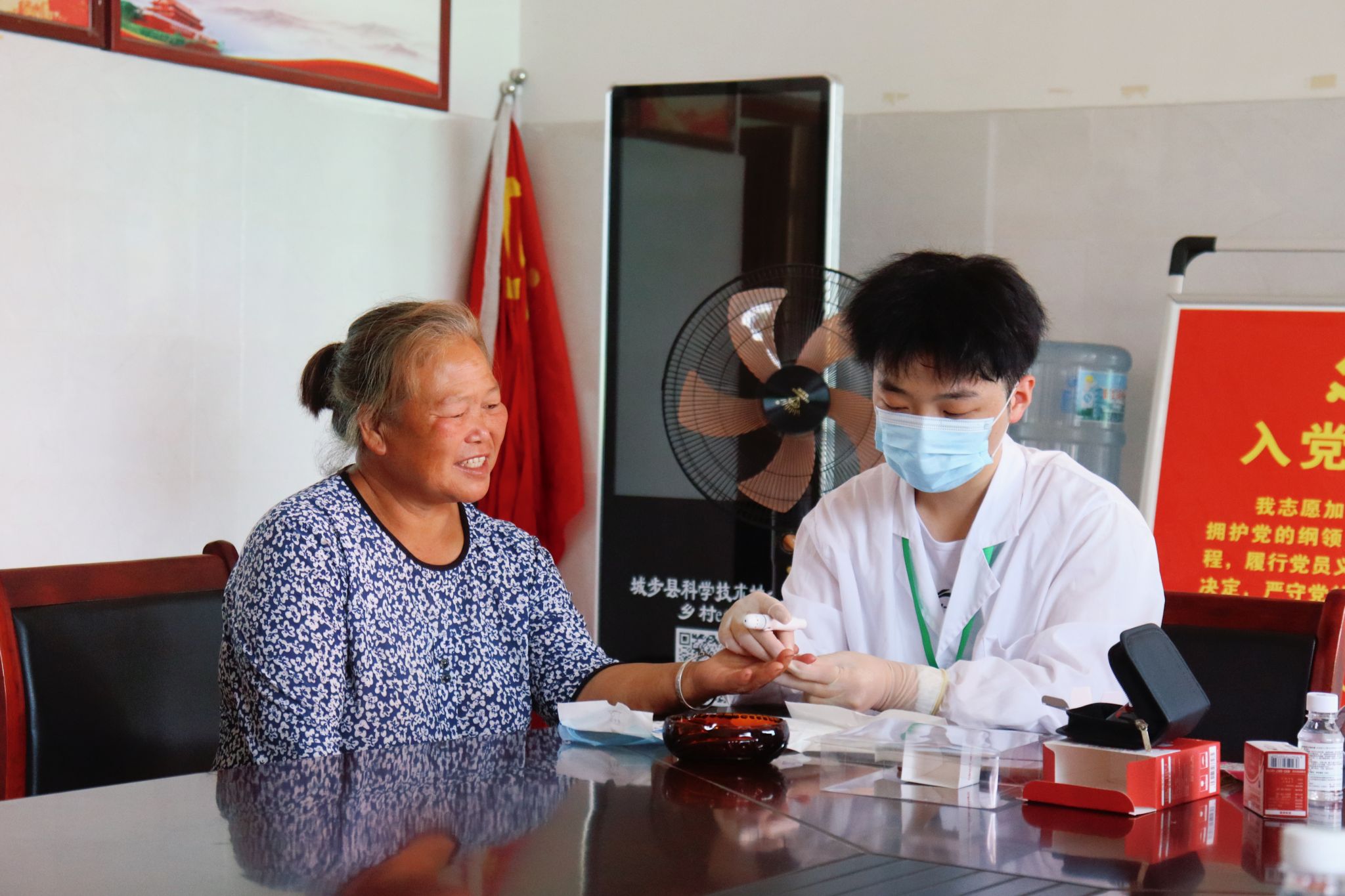 此次义诊活动中,两名来自医学院的成员运用专业知识为村民提供血压测量、血糖检测等服务。在每日义诊开始前,实践团成员做好调试器具和卫生防护的准备工作,这旨在保证义诊服务高效、顺利地进行。义诊的环节分为专业测量、情况问询、分析建议三项。实践团成员在检测村民的血压和血糖后,继续询问村民的饮食和作息习惯,并为其讲解饮食安全和卫生保健知识,必要时给出就医建议,旨在引导村民养成关注自身健康状况的习惯。一位村民表示:“我们这里的地理位置太偏僻,很难做到及时监测健康状况,我是骑自行车从另外一个村赶过来的,这样检测一下让我感觉安心多了。”其他村民也对实践团的到来表示感谢并鼓励实践团成员未来多举办类似的活动。