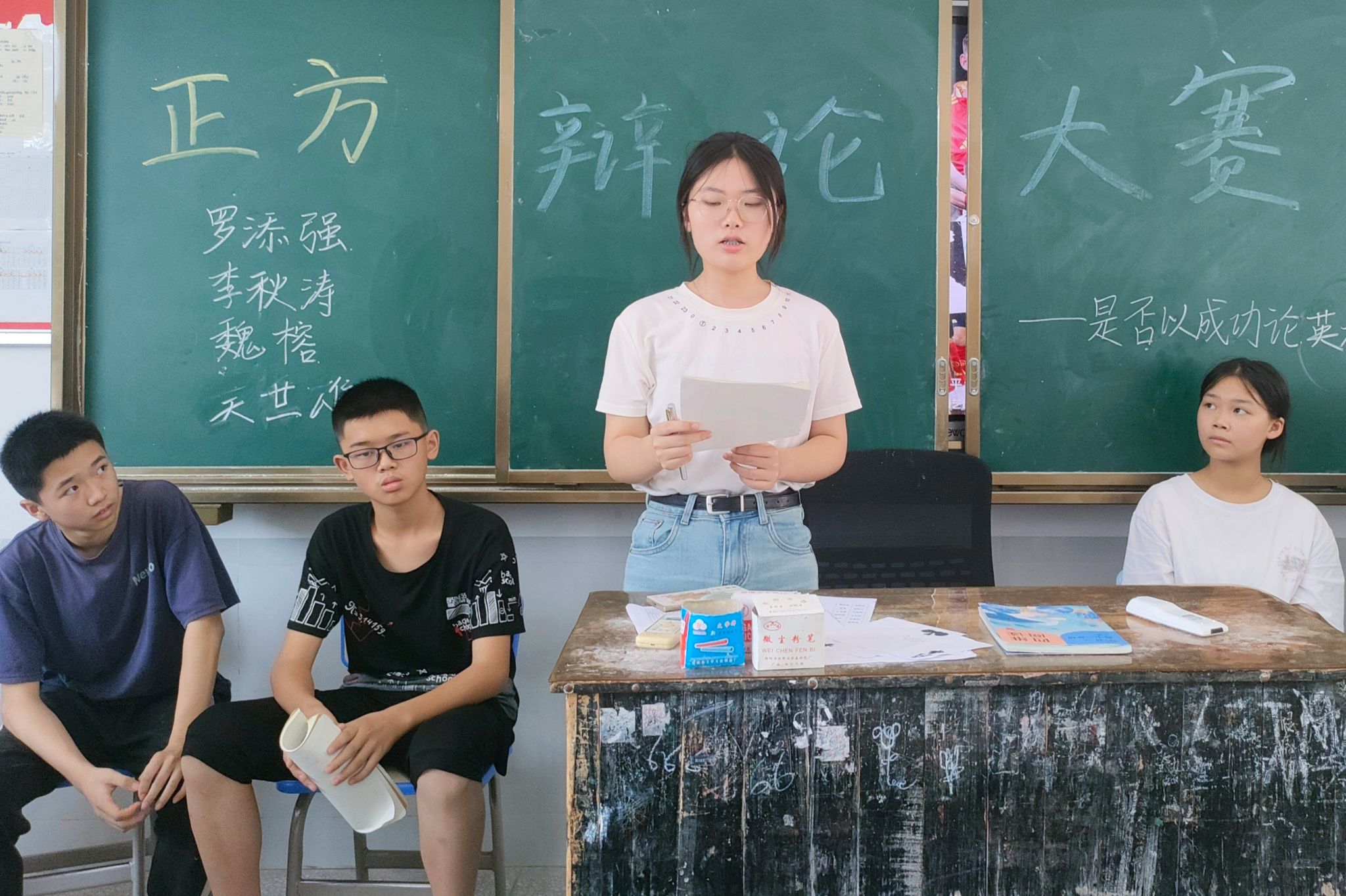此次辩论赛的主题为“是否能以成败论英雄”。比赛开始前,主持人组织学生进行初步投票,二十五名同学支持正方观点,十九名同学支持反方观点,其余同学持中立态度。比赛过程中,辩手们紧扣辩题,摆出实例,秉承己方观点进行阐述和论证。在自由辩论环节,双方轮流发言,对对方的论述进行反驳。在主持人的引导下,双方辩手进行总结,再次重申己方的核心观点和论据。最终评委进行打分和点评。结合评委评分和学生赛后投票情况,正方辩手赢得比赛,反方三辩获得“最佳辩手”称号。