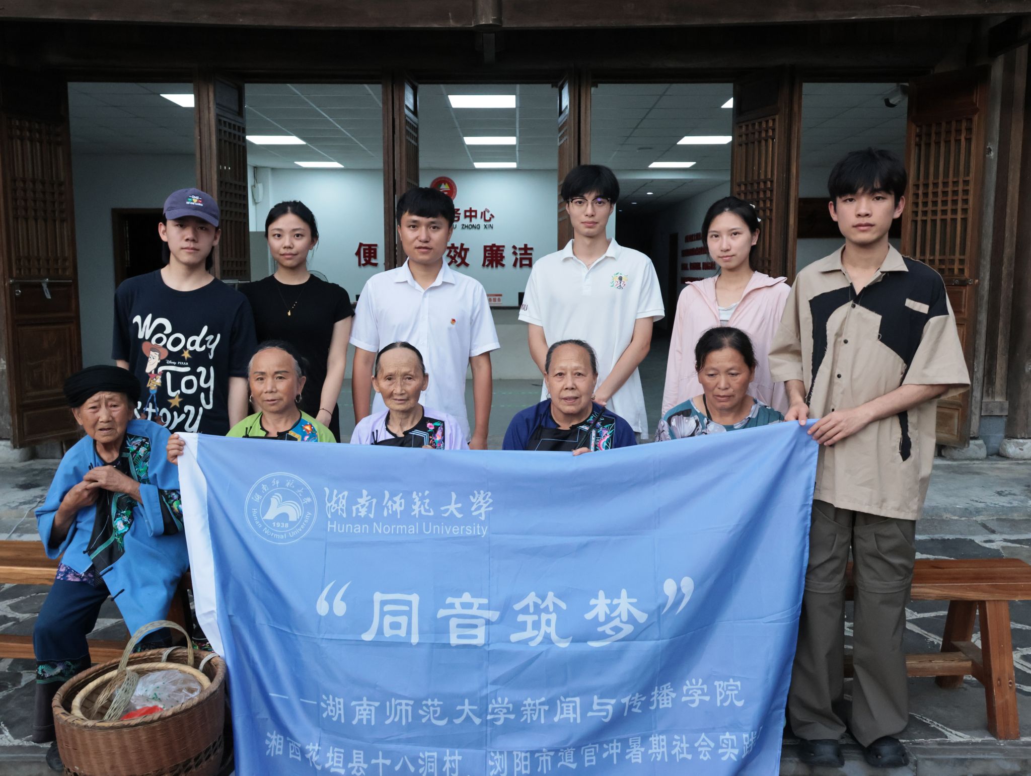 实践团队与施康书记、十八洞村农人于村委会合影