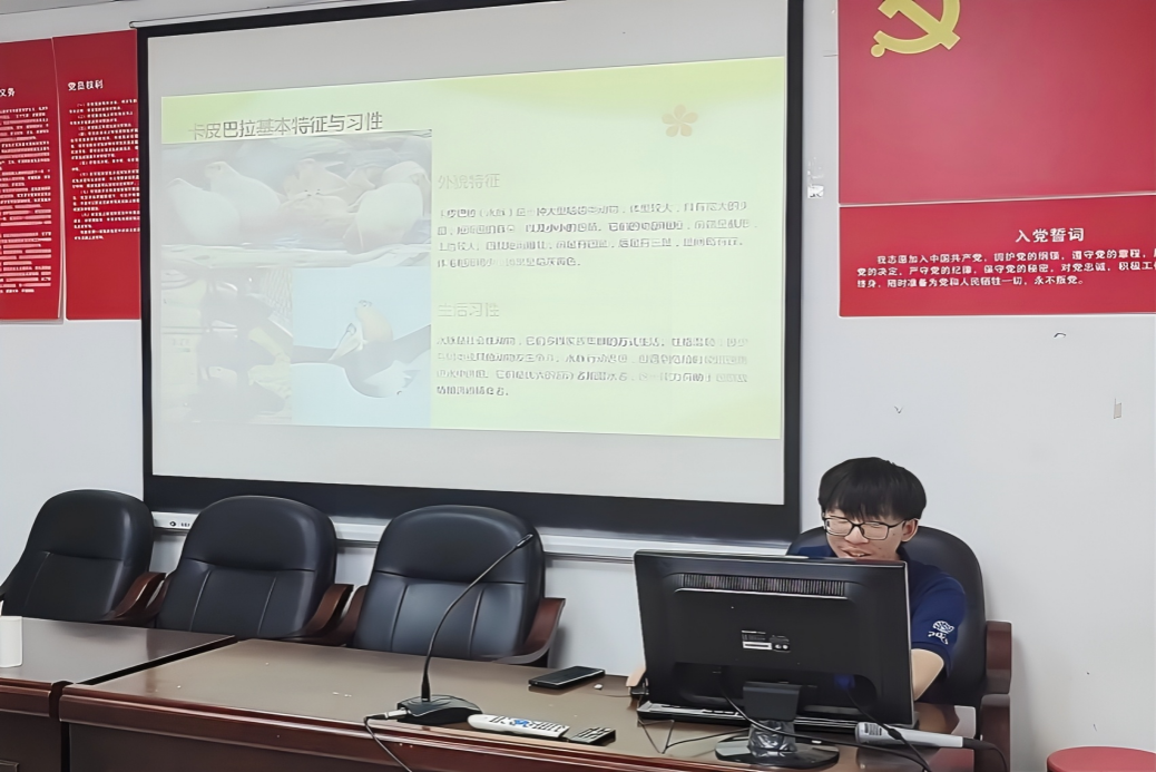 教学组的成员对来自望月湖街道的小朋友们科普卡皮巴拉等动物
