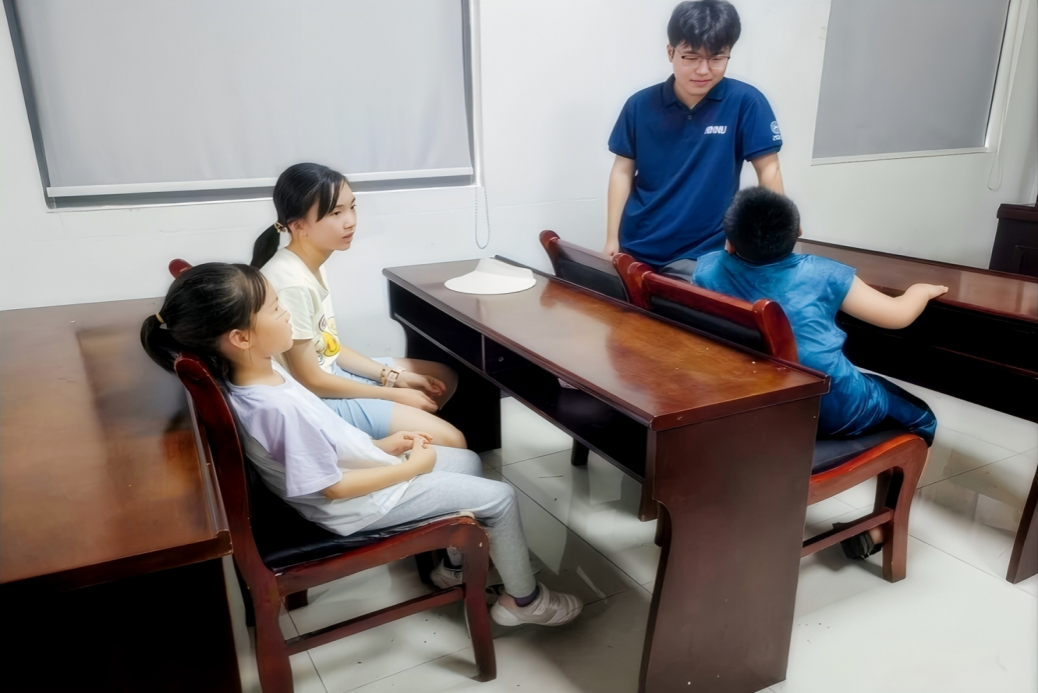 团队成员与来自望月湖街道的小朋友们进行“谁是卧底”游戏