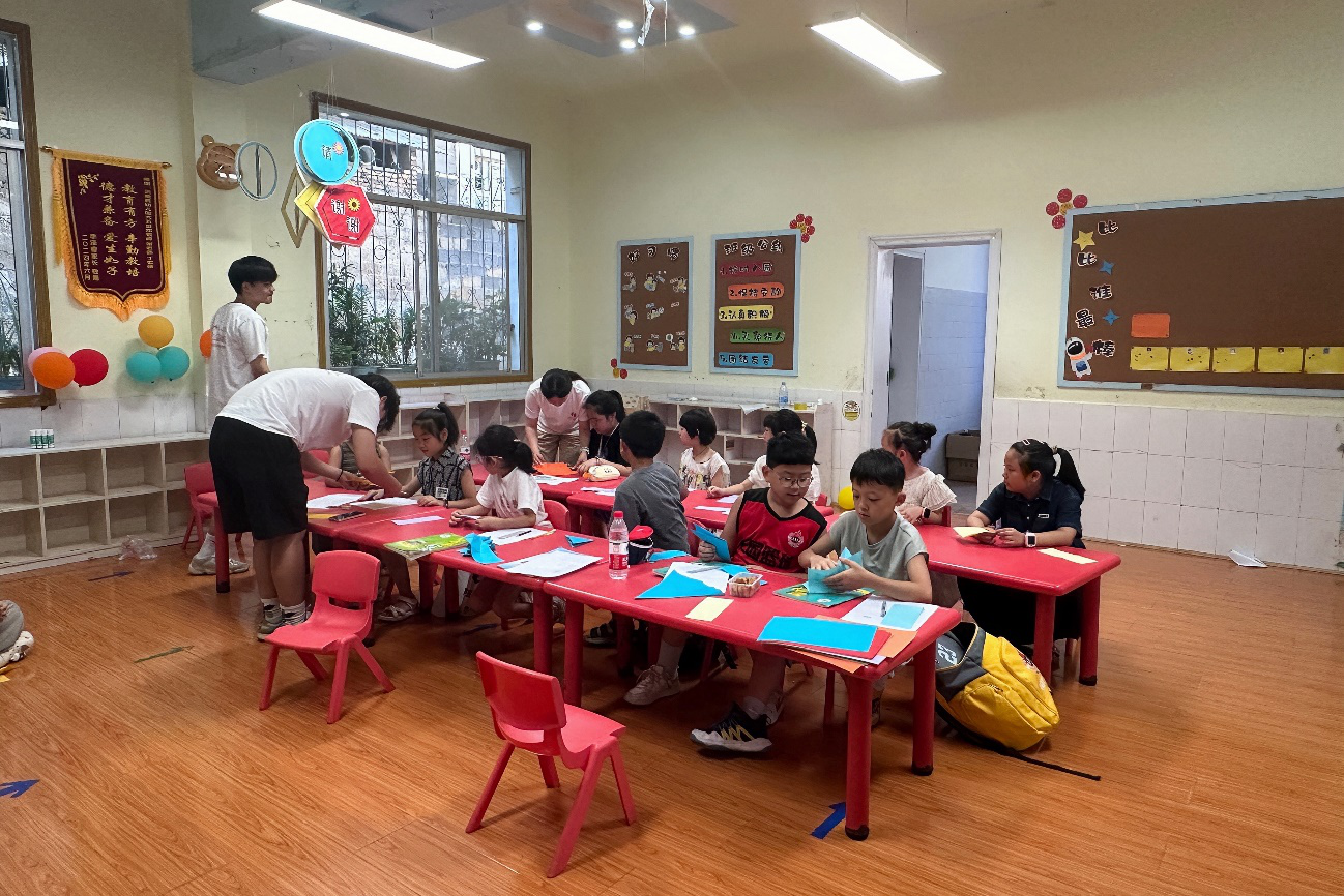 实践团成员带领学生们进行剪纸、折纸等手工制作