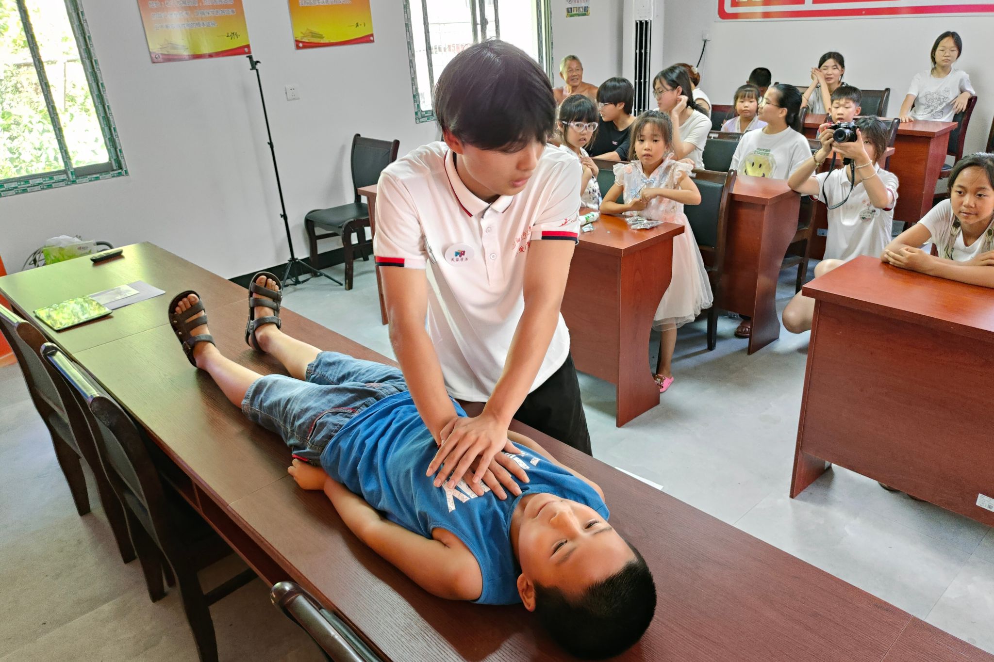 “她山之石”团队成员为孩子们现场演示心肺复苏法