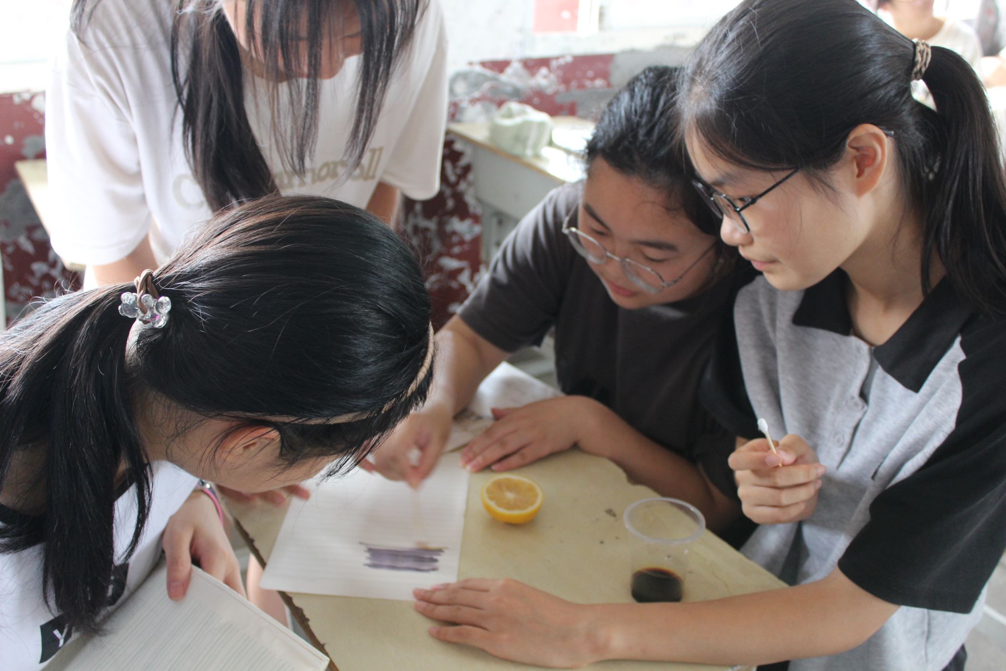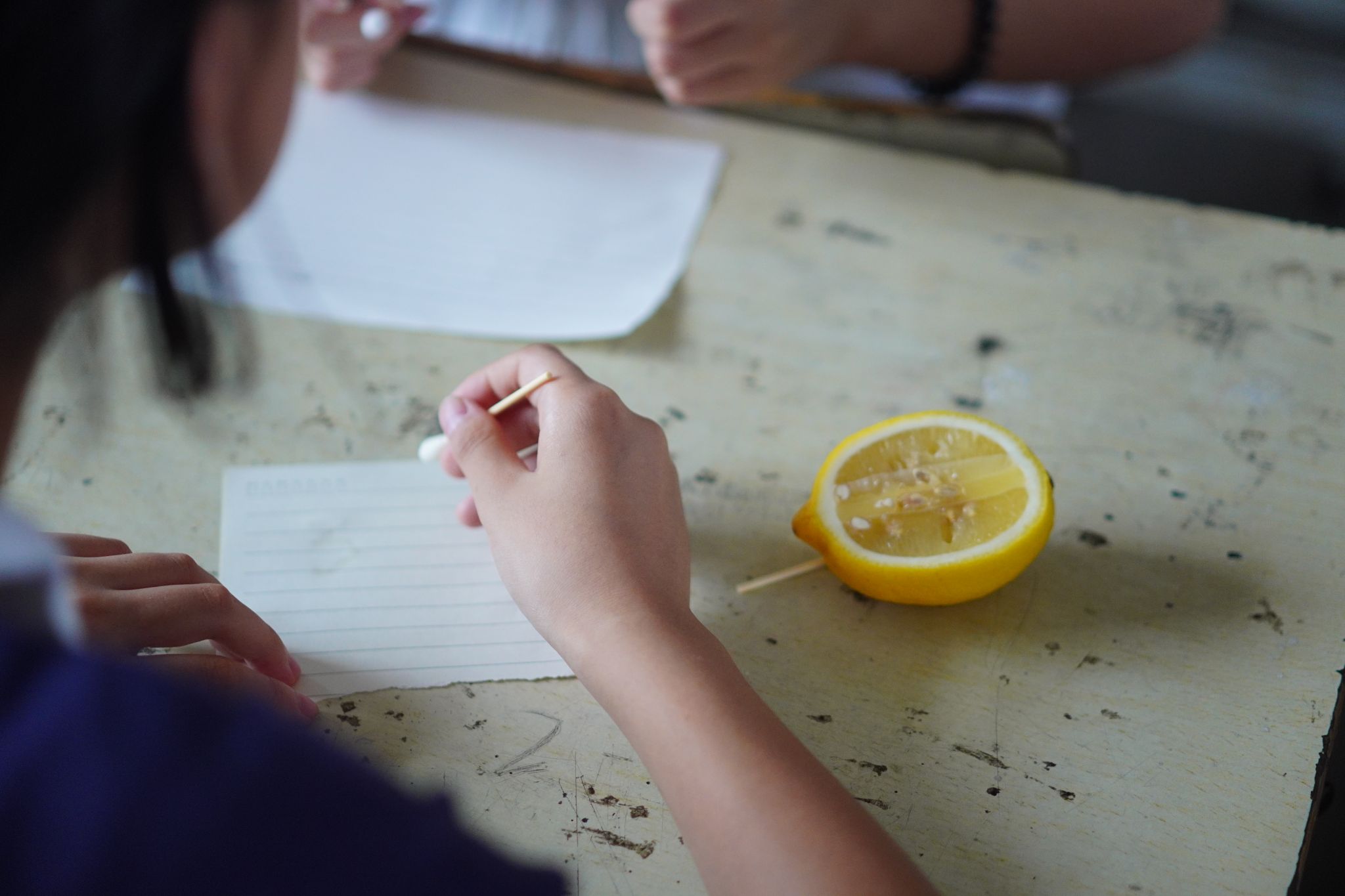 图为学生用柠檬汁书写“密信