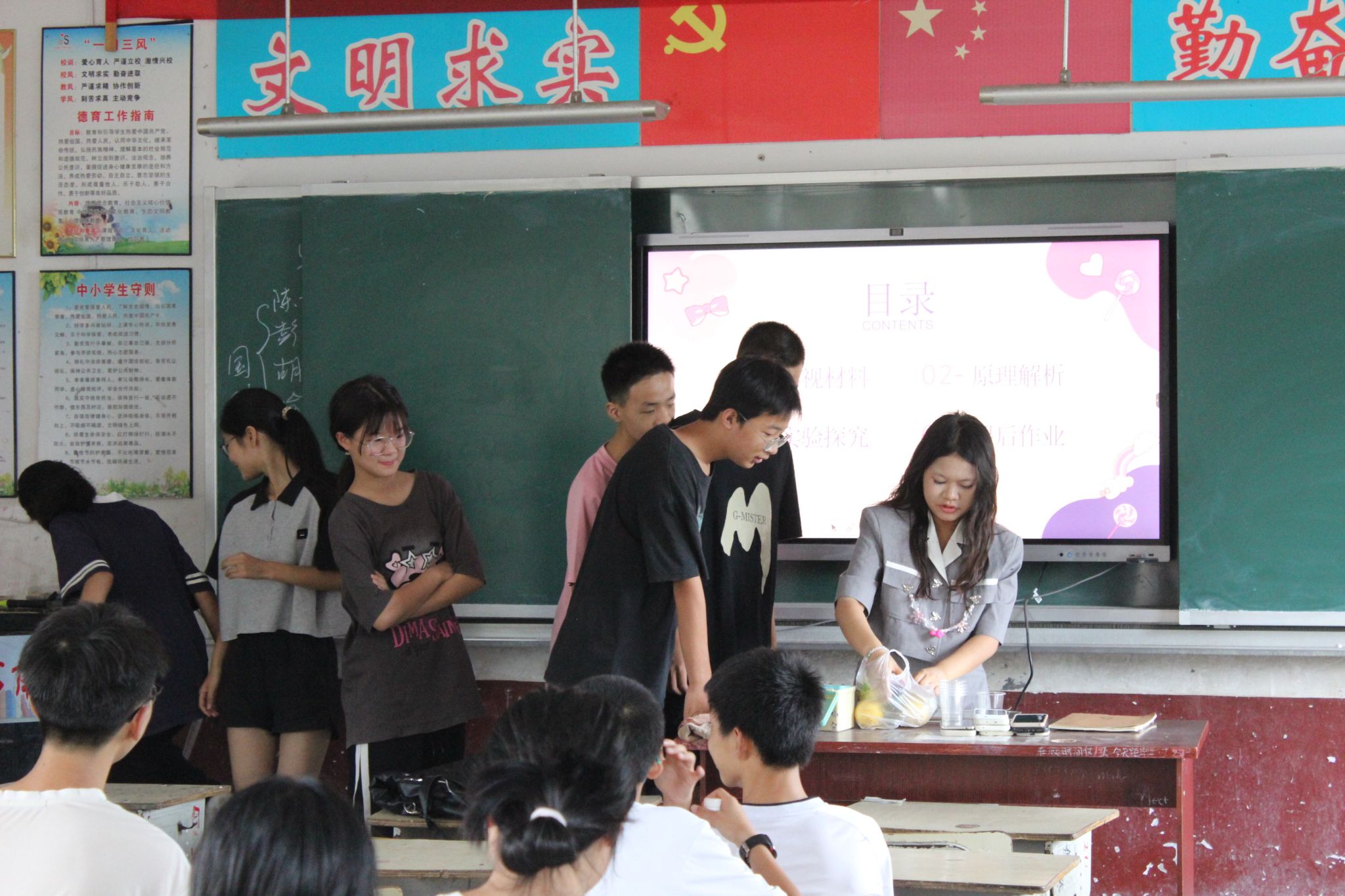 (通讯员 陈栩喆 肖洁 平宗琦)为提升中学生化学知识水平,点燃中学生对化学的热爱及探索欲望,挖掘其学习潜能,7月16日上午,“湘约”——信息科学与工程学院赴长沙市宁乡市双凫铺镇三下乡暑期实践团(以下简称“实践团)于双凫铺镇双凫铺中学以“影视中的化学”为主题,开展化学学科拓展课程。该课程由实践团成员周汶萱主讲,双凫铺中学暑期班全体学生参与。