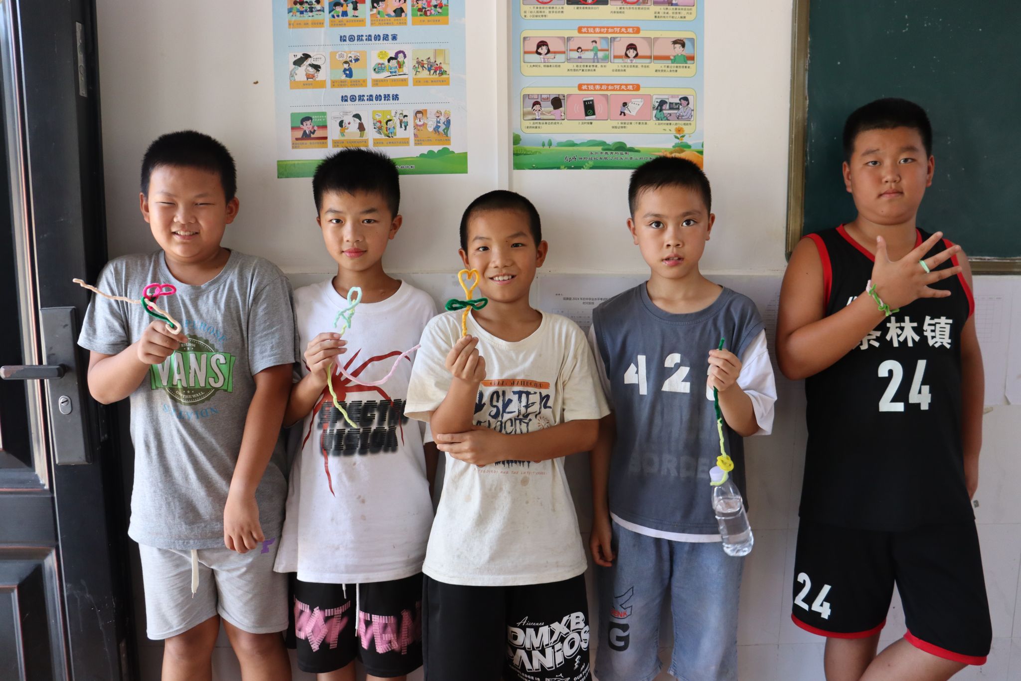 图为“纤绕创意,扭扭生辉”趣味扭扭棒课程中,学生们展示自己的扭扭棒作品。