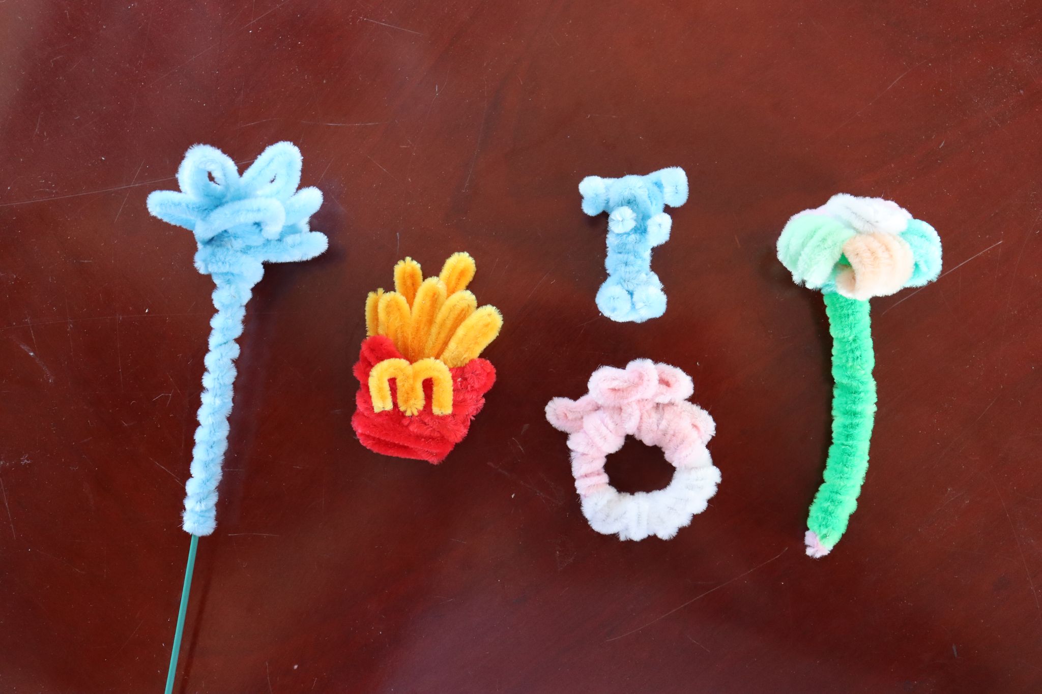 图为“纤绕创意,扭扭生辉”趣味扭扭棒课程中,学生作品展示。