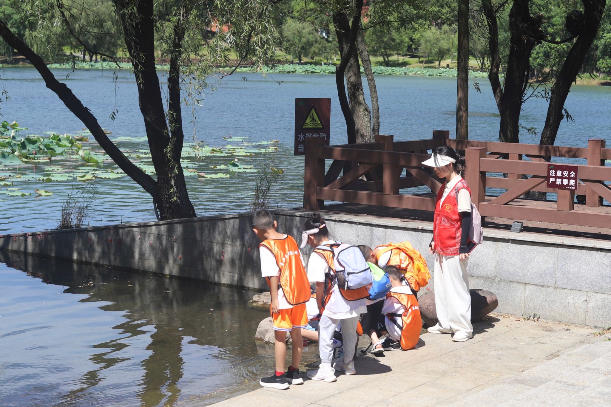 实践队带领小朋友们于桃子湖畔清理福寿螺