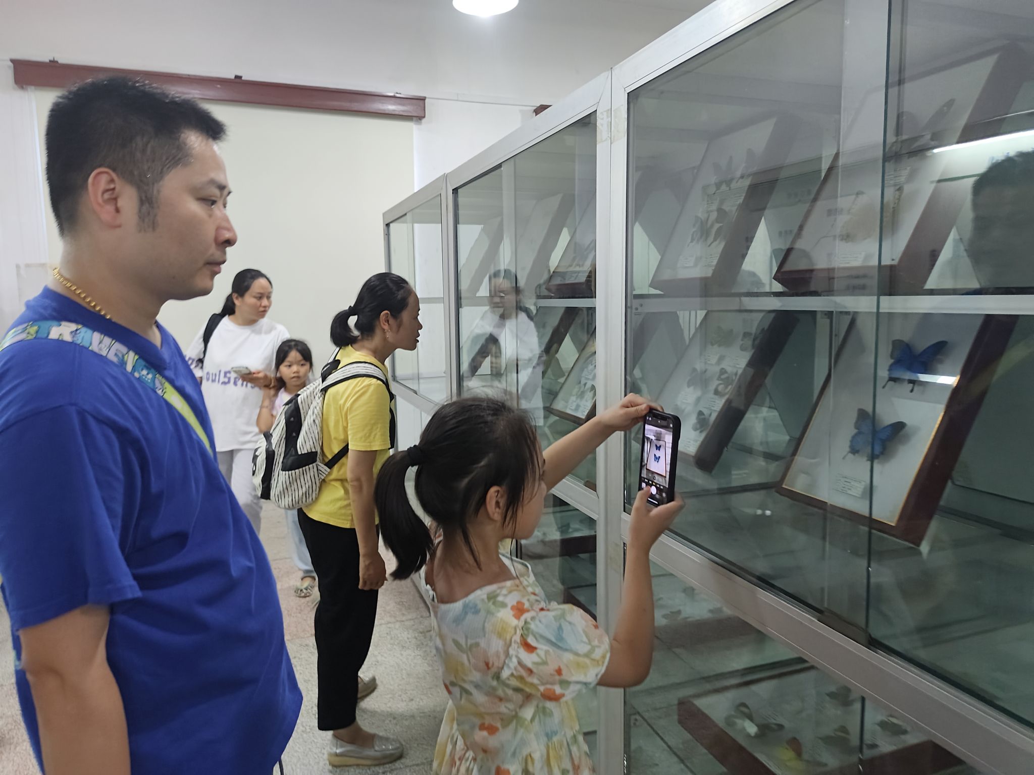 小朋友与家长参观无脊椎动物标本馆
